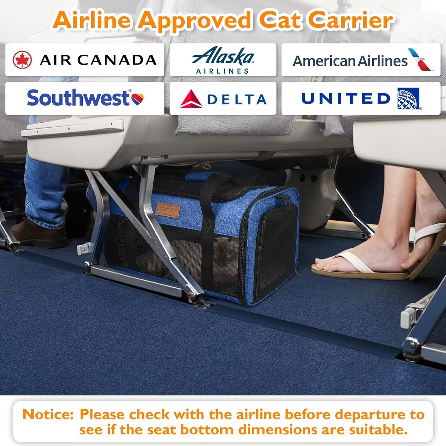 - 【Durable, Safe & Waterproof Soft-Sided Cat Carrier】 Crafted from high-quality, waterproof fabric, the PETUX cat bag carrier offers protection against the elements. It has a safe leash and a compact design that fits under the seat, allowing you to take your pet with you on your flights without worry. The top opening makes it easy to access your pet and provides comfort during travel. So the TSA-approved pet carrier in the cabin is also easy to wipe clean, making it ideal for frequent travelers