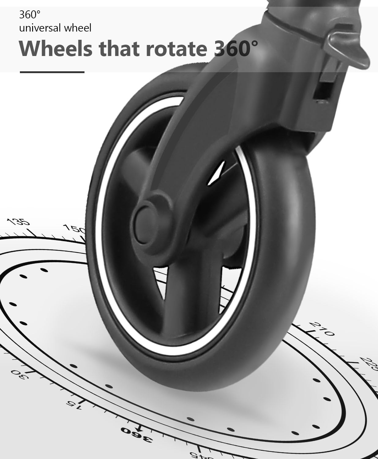 • [Superior Wheel Design for Smooth Rides] - Navigate with ease thanks to our pet stroller's robust wheel system; It boasts a 5.5-inch front wheel diameter for agile maneuvering and a 6-inch rear wheel diameter for stability, complete with reliable rear wheel brakes for safe strolling