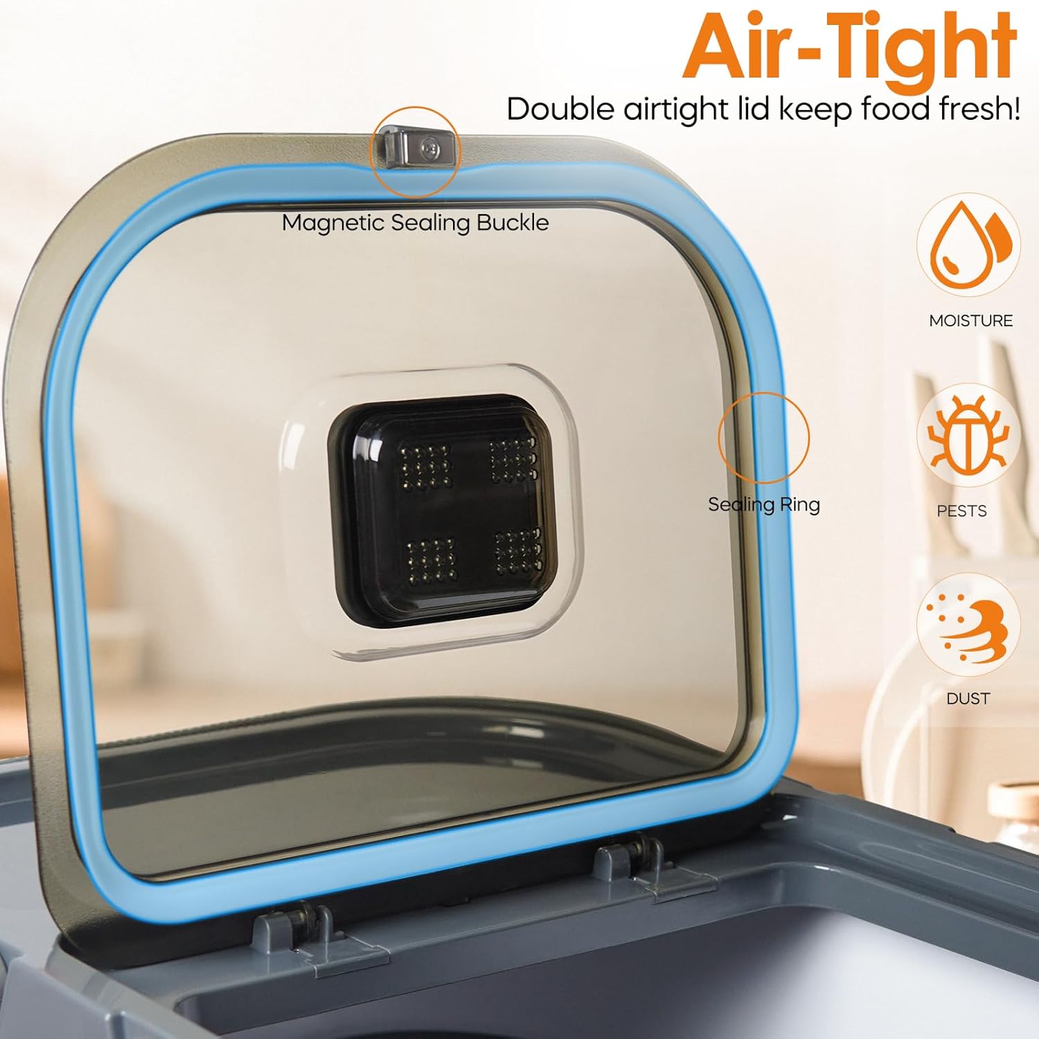 • 【Moisture Protection】This dog food storage bin also comes with a sealing Ring, ensuring lasting freshness and allowing you to add desiccants for extra protection.