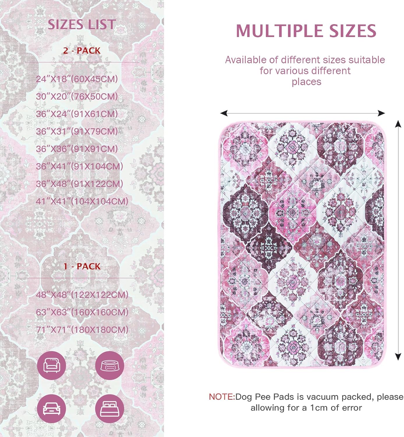 • 【Fashionable and Non-Slip】Our bohemian-print design adds a natural touch to the potty pads for dogs, giving your room a warm, casual vibe. And the non-slip bottom design makes the pet pee pads can achieve a certain fixed effect, you can put it anywhere you want. Soft and non-slip material makes it safer for dogs to use the pads.