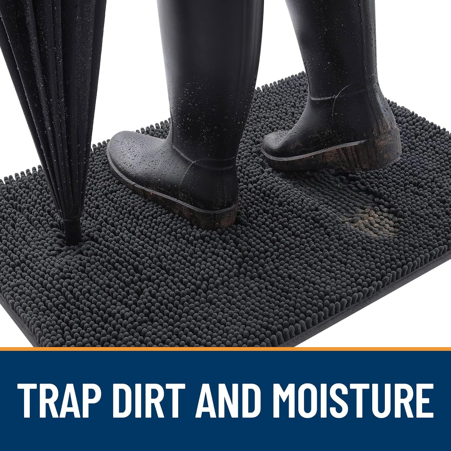 OLANLY Dog Door Mat for Muddy Paws 45x27, Absorbs Moisture and Dirt, Absorbent Non-Slip Washable Doormat, Quick Dry Chenille Mud Mat for Dogs, Entry Indoor Entryway Carpet for Inside Floor, Dark Grey