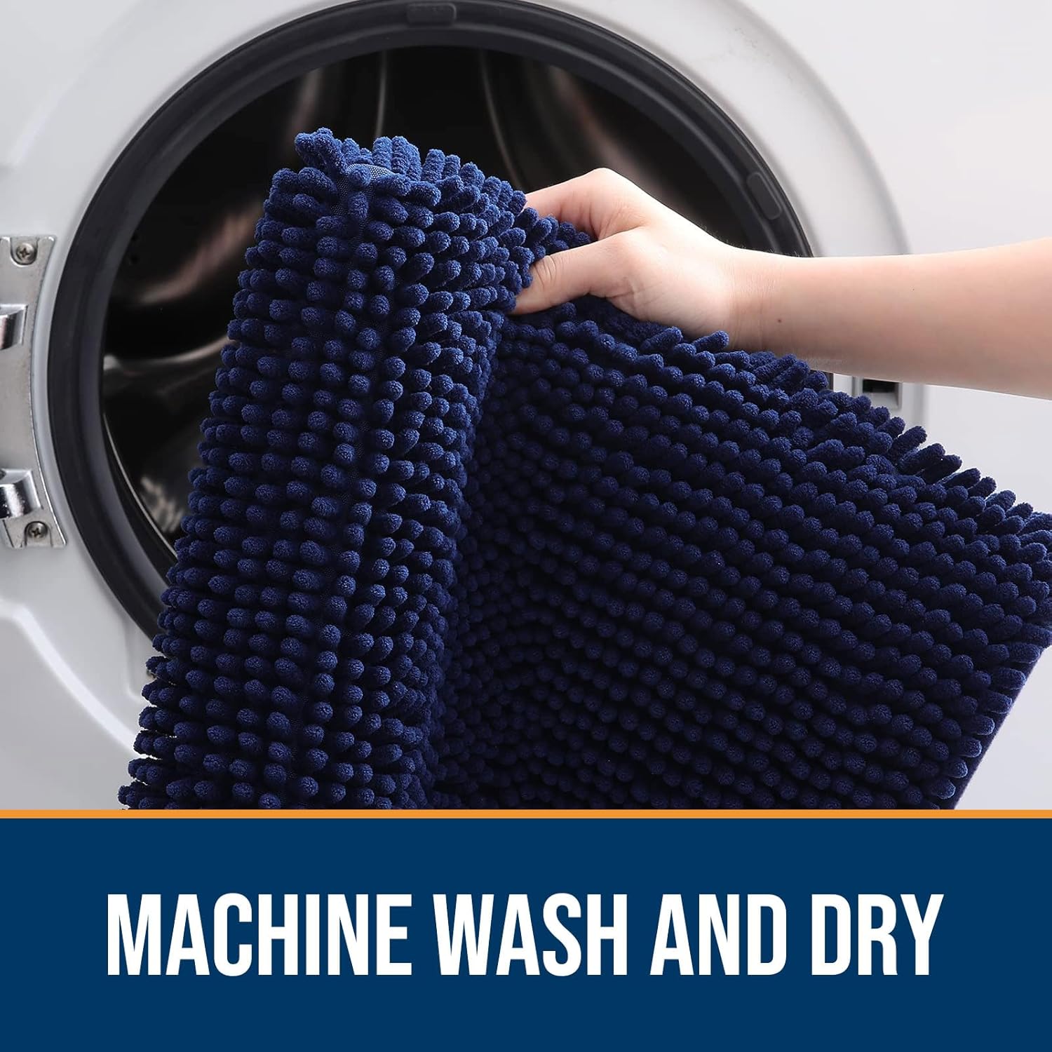 OLANLY Dog Door Mat for Muddy Paws 44x32, Absorbs Moisture and Dirt, Absorbent Non-Slip Washable Doormat, Quick Dry Chenille Mud Mat for Dogs, Entry Indoor Entryway Carpet for Inside Floor, Navy Blue