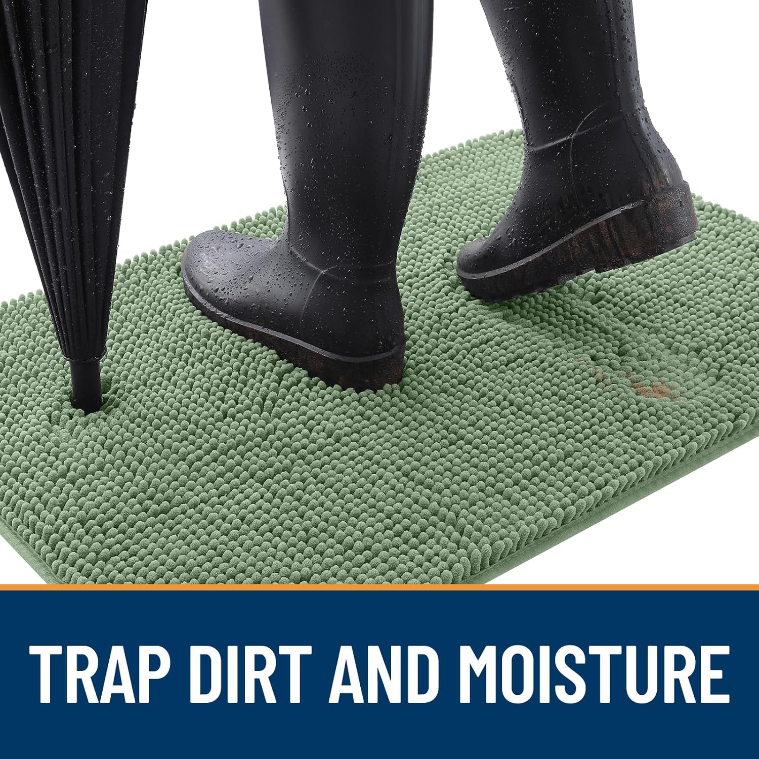 OLANLY Dog Door Mat for Muddy Paws 54x24, Absorbs Moisture and Dirt, Absorbent Non-Slip Washable Doormat, Quick Dry Chenille Mud Mat, Entry Indoor Entryway Carpet for Inside Floor, Olive Green