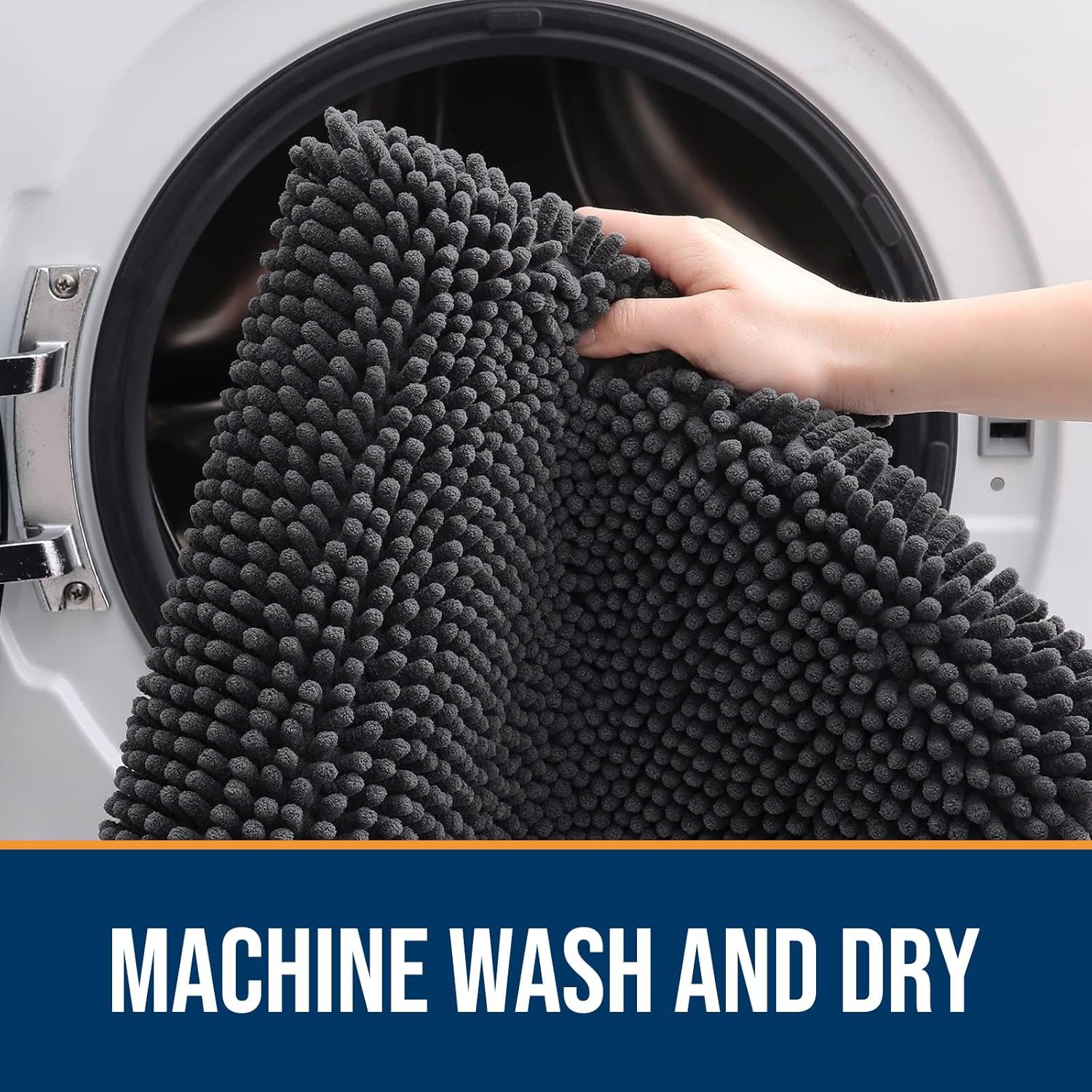 OLANLY Dog Door Mat for Muddy Paws 44x24, Absorbs Moisture and Dirt, Absorbent Non-Slip Washable Doormat, Quick Dry Chenille Mud Mat for Dogs, Entry Indoor Entryway Carpet for Inside Floor, Dark Grey
