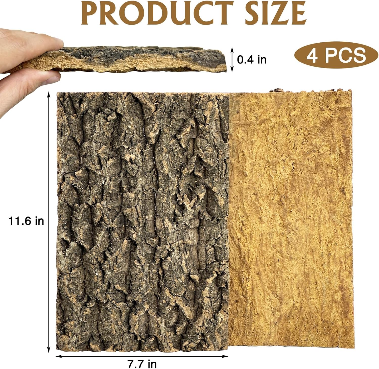 • Natural Cork Bark: Cork bark background is made from natural bark, free of additives and preservatives, with a natural rough texture that is easy for reptiles to climb. Package includes 4 PCS cork bark backdrop