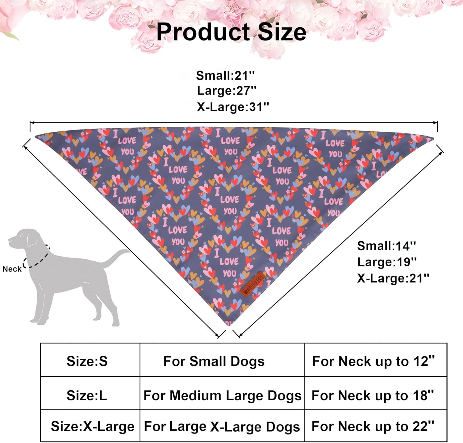 • Valentine's Day Dog Bandanas: Well designed pink blue valentine bandanas with heart and floral pattern, "always in my heart" and "I love you" letters, full of romantic atmosphere, make your pet look more stylish and attractive.