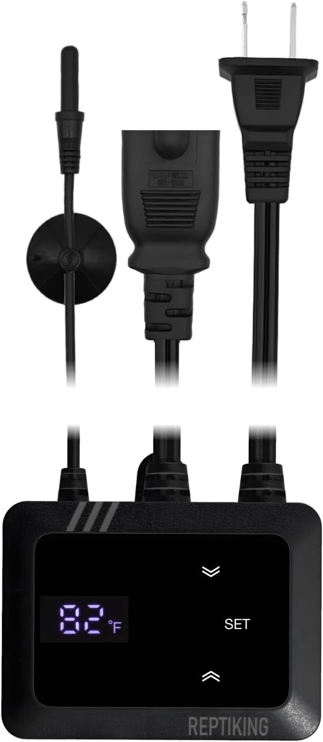• 68โ„‰ - 122โ„‰ or 20ยฐC -50ยฐC can be set in a range that meets the temperature settings of most reptiles in their natural habitat. Maximum load of 200W heat lamp, UL certified power cord is safer and more reliable.
