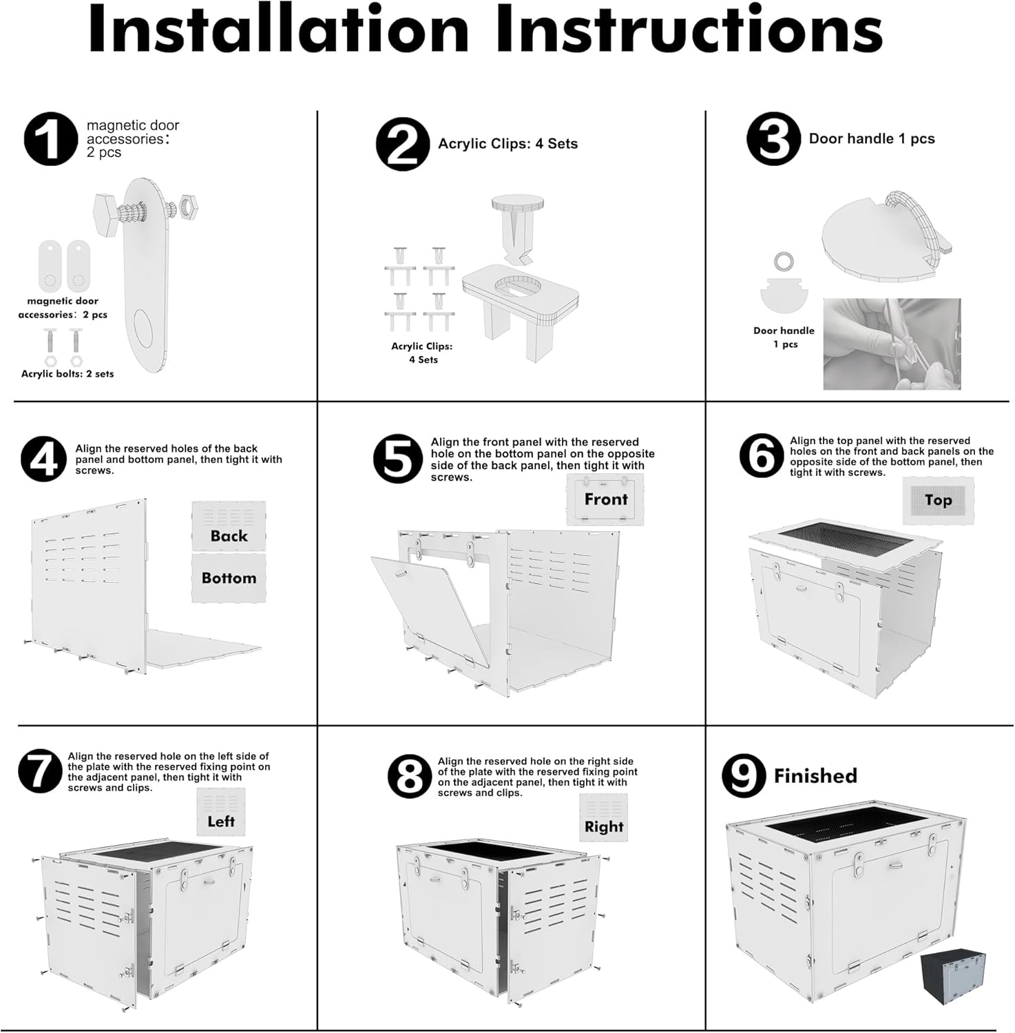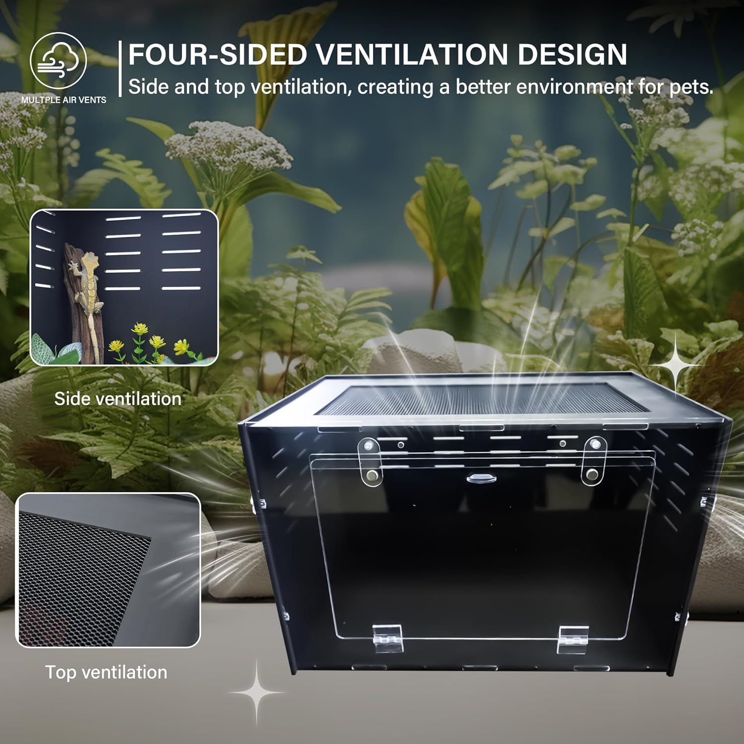 • Transparent Front for Easy Observation of Pet Activity The transparent front panel of this reptile enclosure allows you to easily observe your pets’ behavior and health. Whether it's a jumping spider enclosure or a reptile terrarium, you can always keep an eye on your pets' well-being and make sure they're thriving in a safe and comfortable environment.