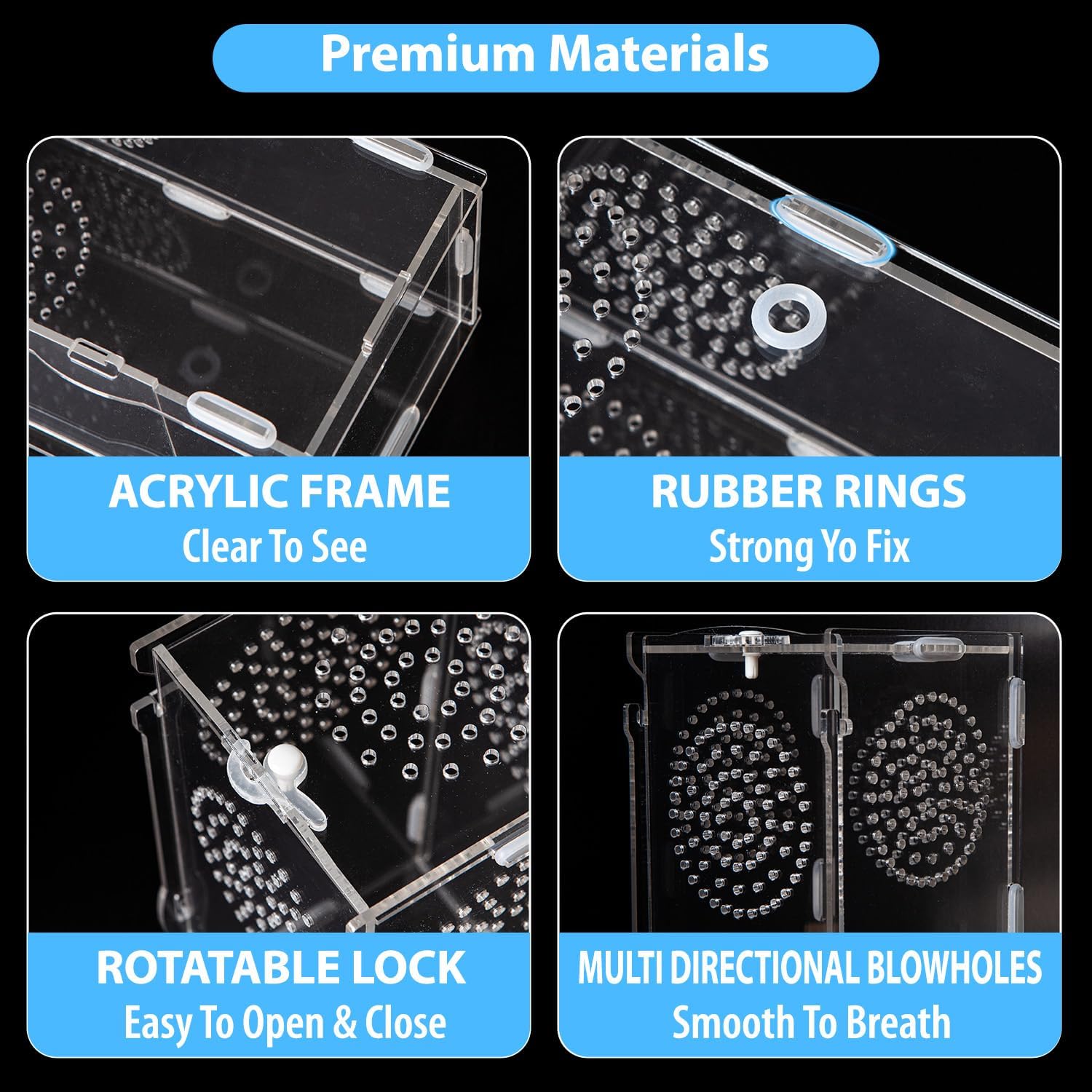 • 【 Premium Material and Safe】This reptile enclosure is crafted from high-quality acrylic plastic, reliable and sturdy to service for long time. High elasticity rubber rings can seal the whole cage well, and the double insurance of rotatable jailbreak lock on the top prevent pets from escaping