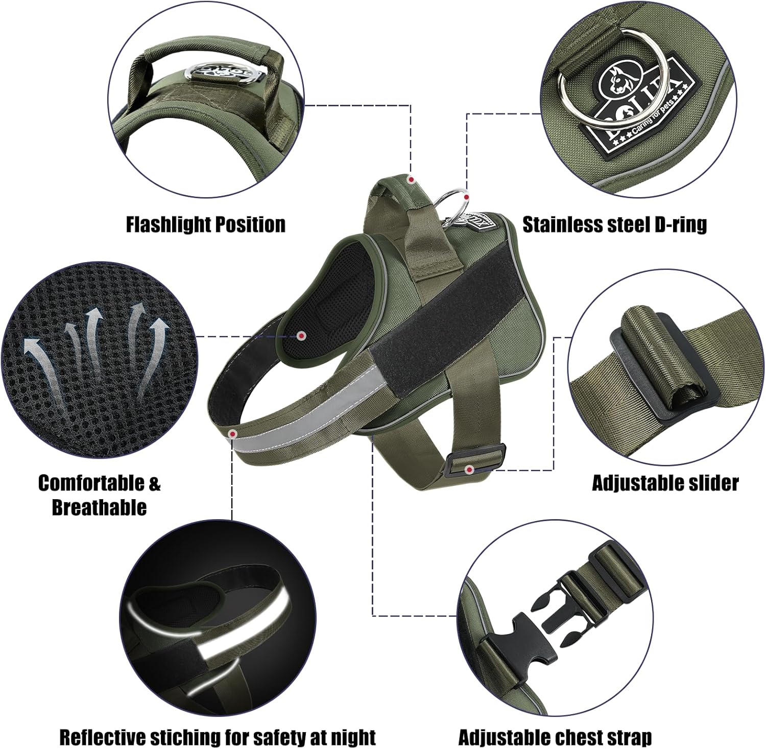 • OUTDOOR HEALTHY: Puppy no pull dog harness with reflective straps to ensure your dog is highly visible and keep dogs safe at night. You can connect the dog leash on the D-ring and with handle is easy to control on crowded streets. The high-end pet harness is perfect for daily walking, running, hiking, training, hunting, outdoor adventure and more!