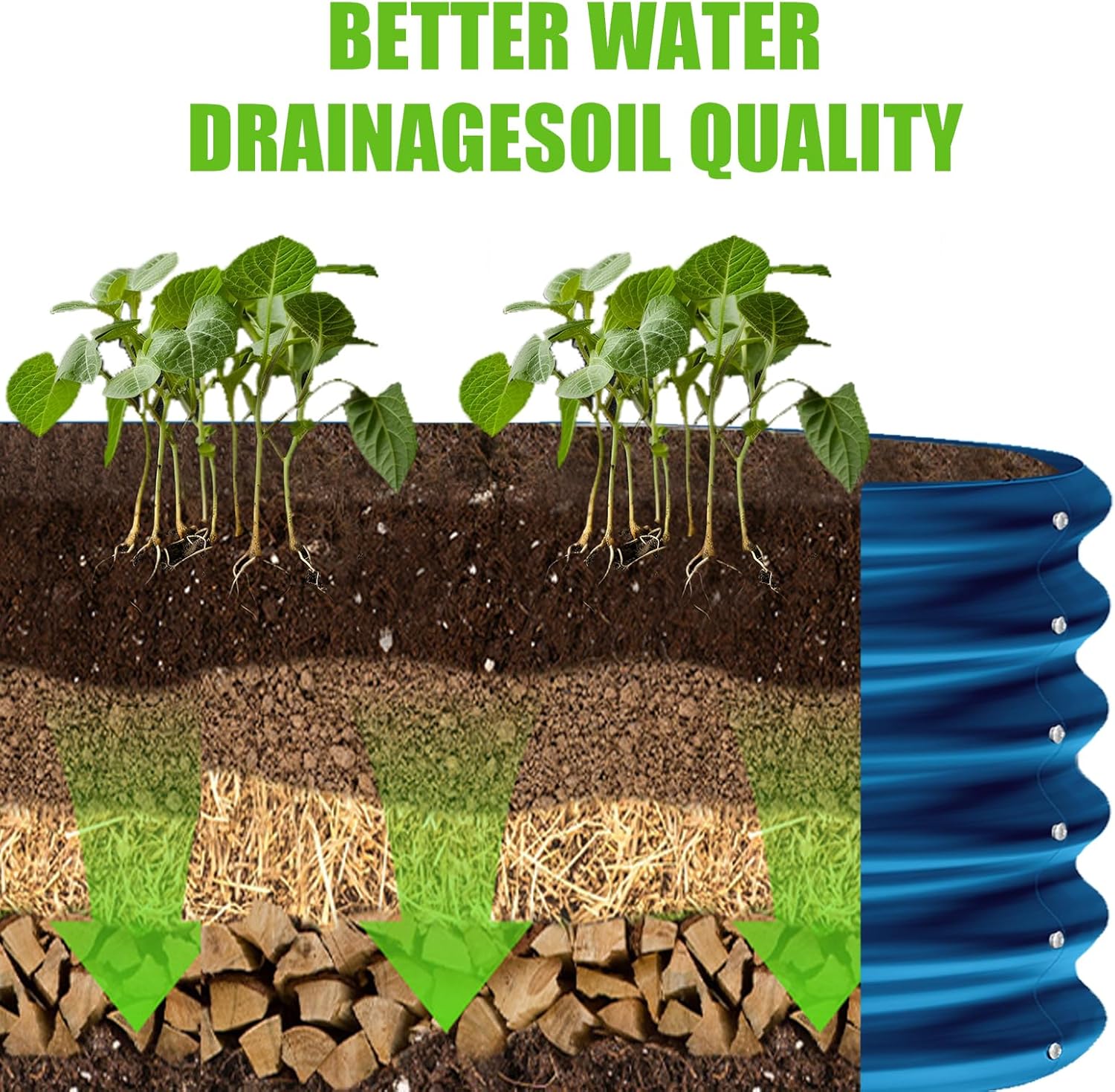 • Bottomless Design: Our raised garden bed features a unique bottomless construction that allows for natural soil drainage, effectively preventing water accumulation. This ensures ample oxygen is delivered to plant stems, promoting healthy growth and reducing maintenance efforts.