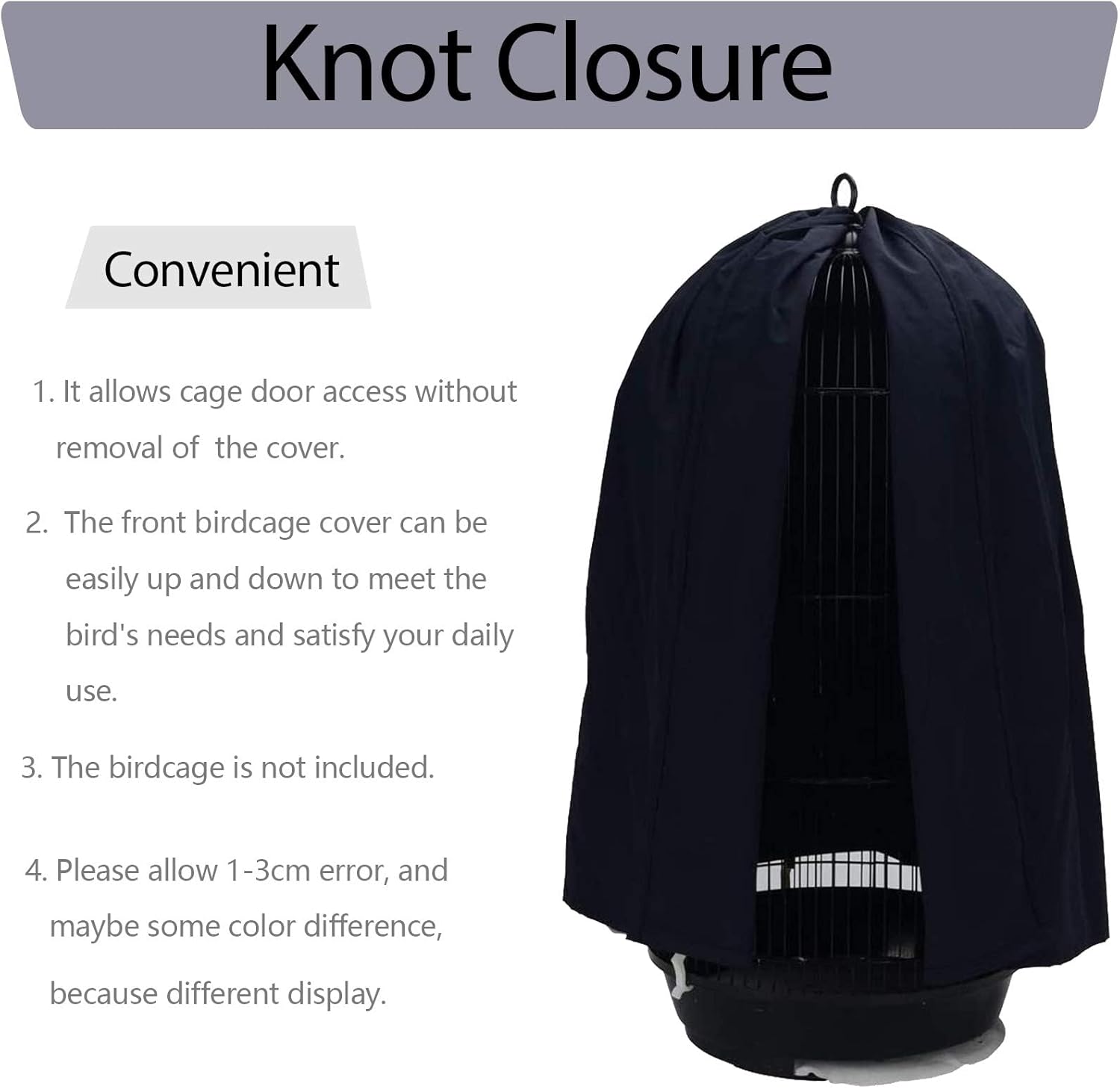 • Unique Design - Convenient knot closures are designed for easy installation and removal. The front birdcage cover can be easily up and down to meet the bird's needs and satisfy your daily use