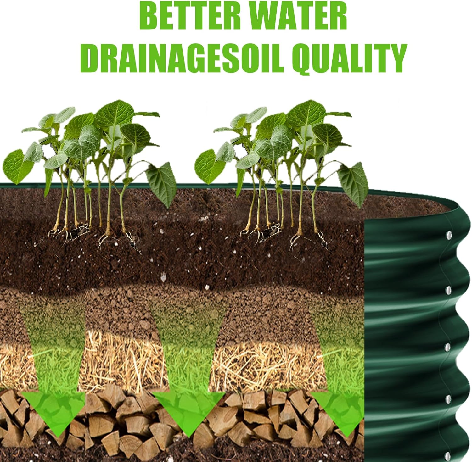 • Bottomless Design: Our raised garden bed features a unique bottomless construction that allows for natural soil drainage, effectively preventing water accumulation. This ensures ample oxygen is delivered to plant stems, promoting healthy growth and reducing maintenance efforts.