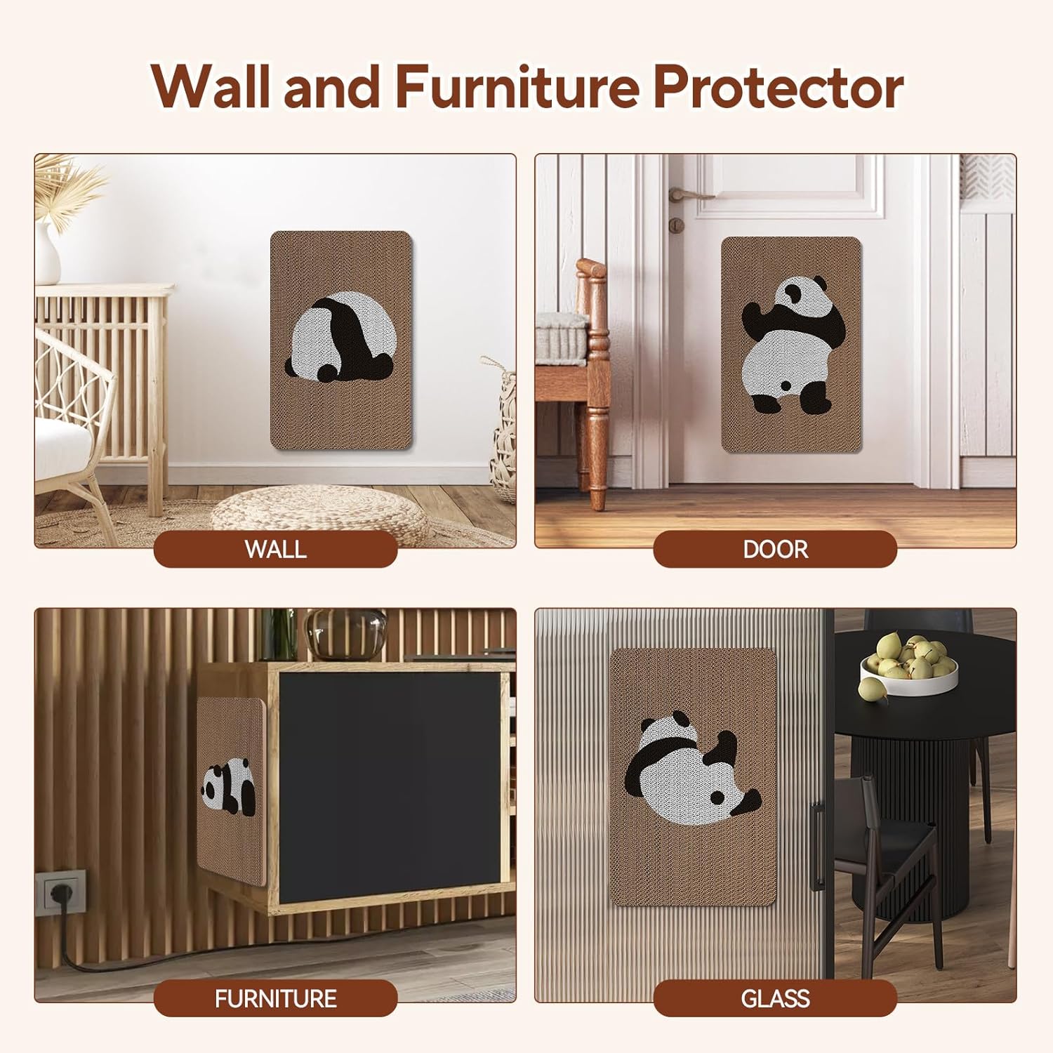 • 【Cute Wall Scratchers】6pcs of the cat scratching boards feature cute panda patterns. This wall-mounted cat scratchers can protect walls, corners and furnitures while seamlessly blending into your home decor.