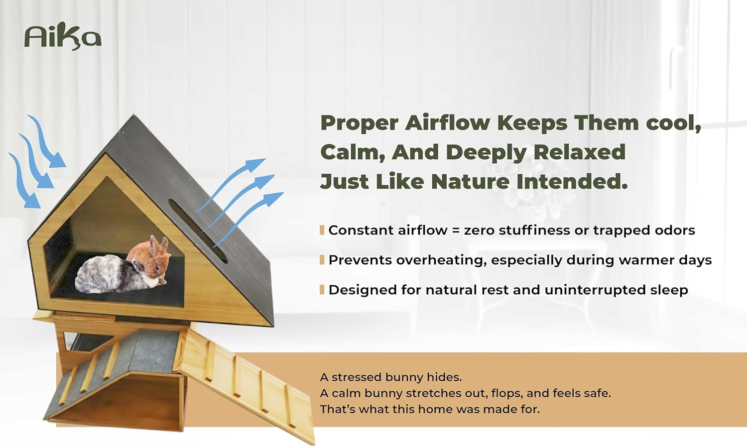 • Easy Assembly: This rabbit house indoor/outdoor is designed for quick, tool-free assembly. The slots in the wooden rabbit house are firmly locked with rubber bands, ensuring the structure remains sturdy and stable.