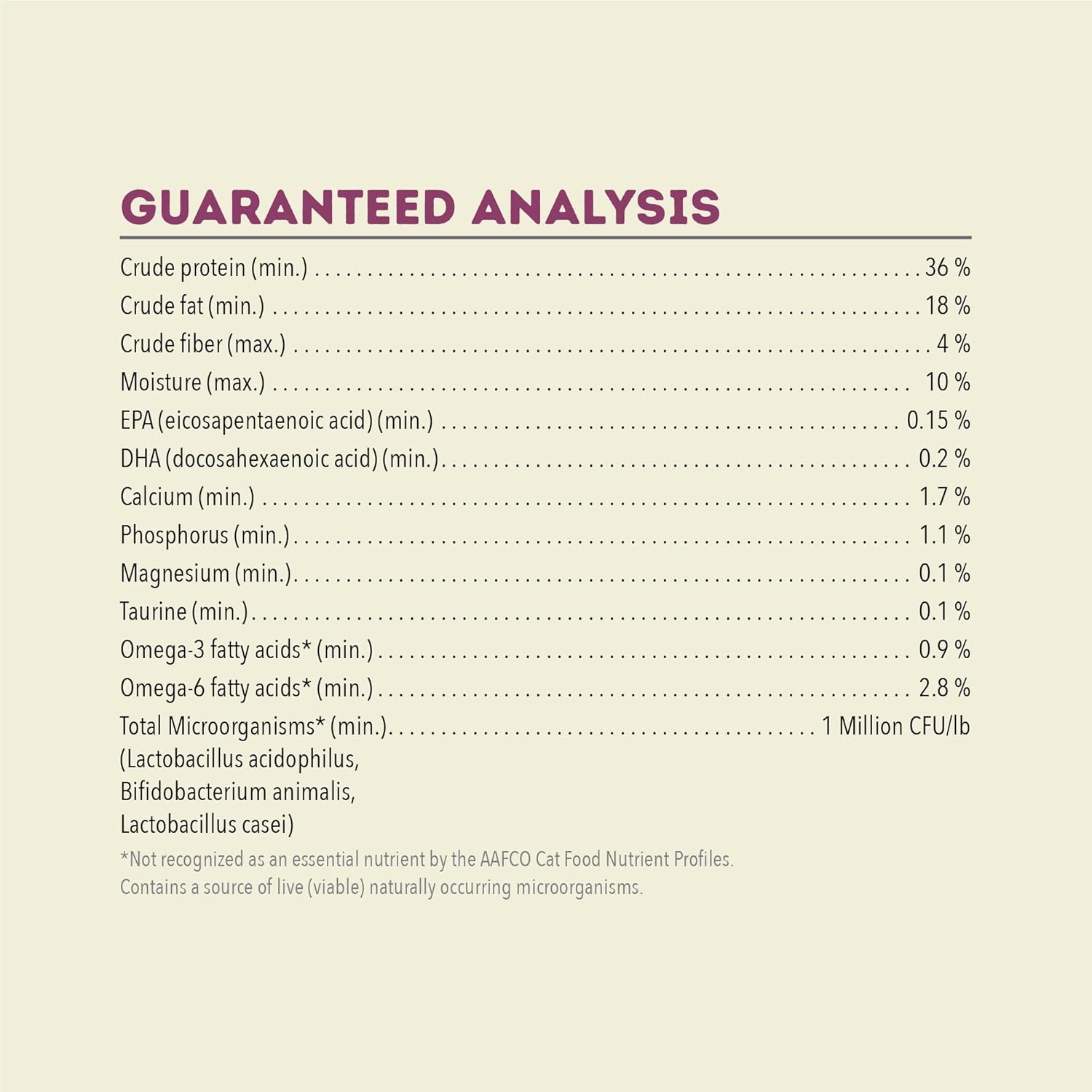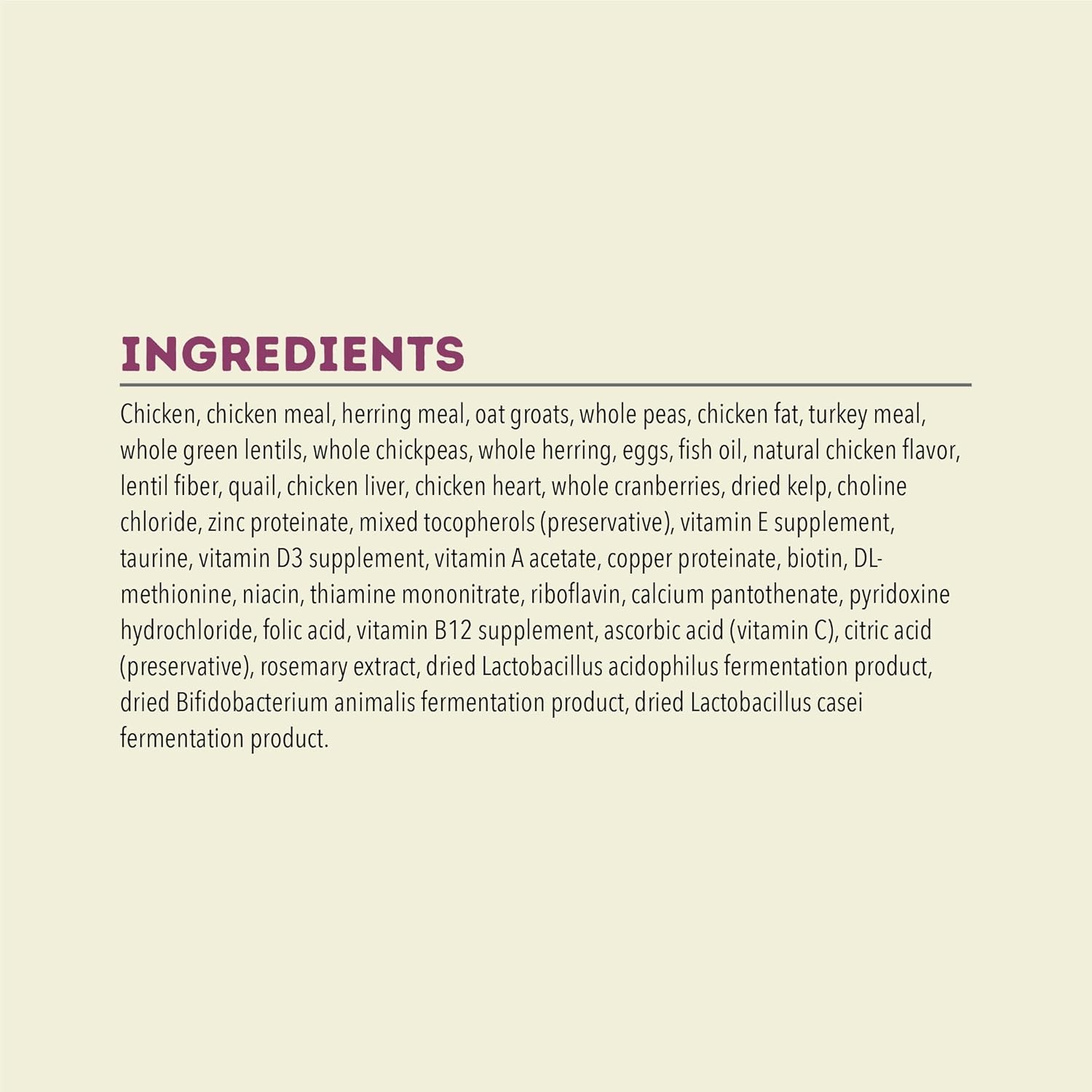 • This grain free**** dry cat food never includes artificial flavors, colors or preservatives and we never add soy, corn, tapioca or wheat.