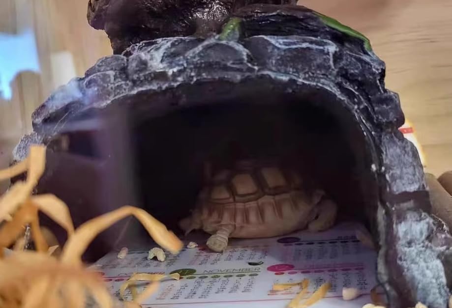 • Spacious Design for Large Reptiles:Measuring 10.5 x 8.6 x 5.7 inches, this reptile hideout is larger than most, providing ample space for bearded dragons, adult turtles, frogs, crawfish, large catfish, and other reptiles,small pets or fish to rest and explore.