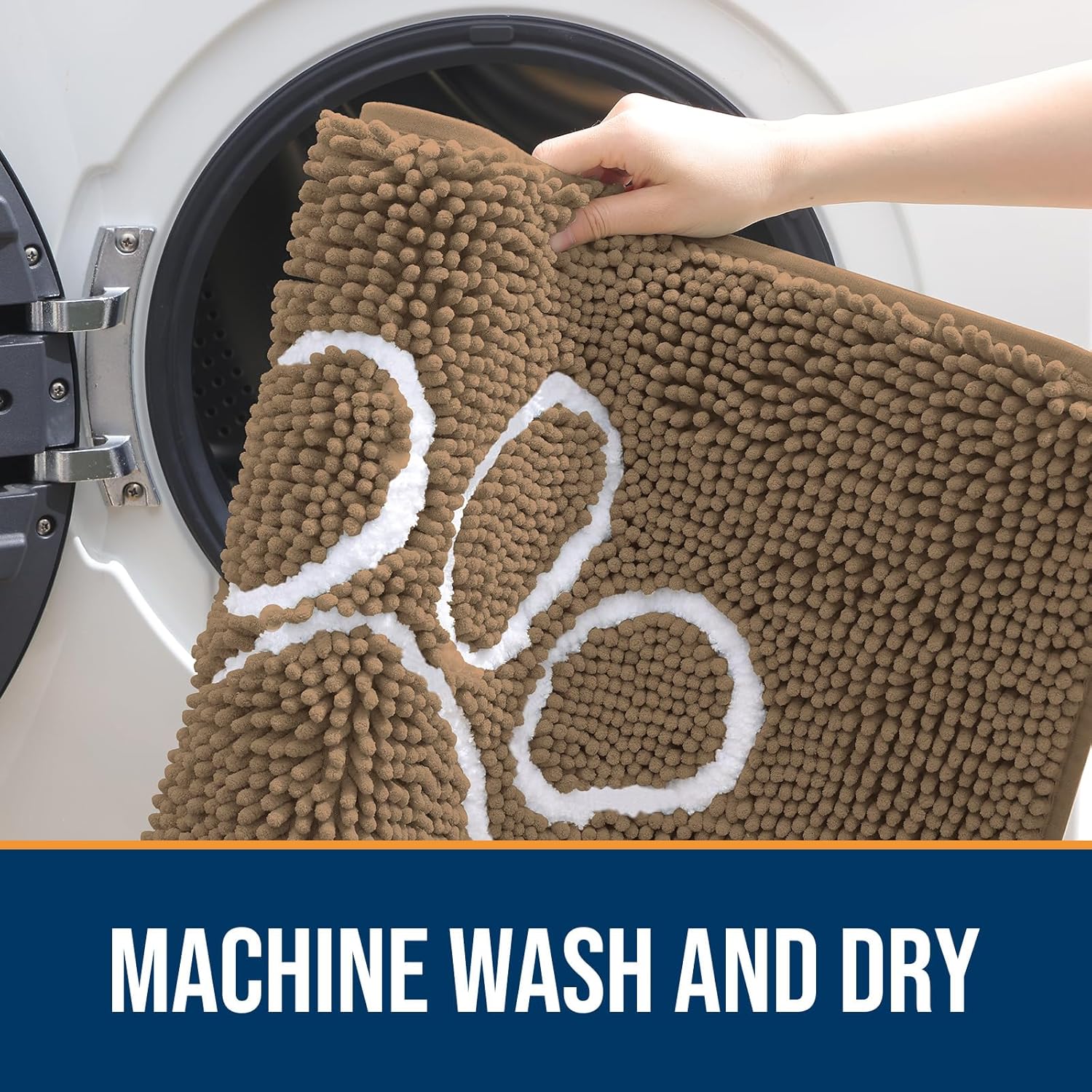 OLANLY Door Mat for Muddy Dog Paws 70x24, Ultra Absorbent Chenille Mud Doormat with Paw Print Design, Non-Slip Washable Doormat for Indoor Entryway, Quick-Dry Pet Bed Mats for Dirty Dogs, Tan