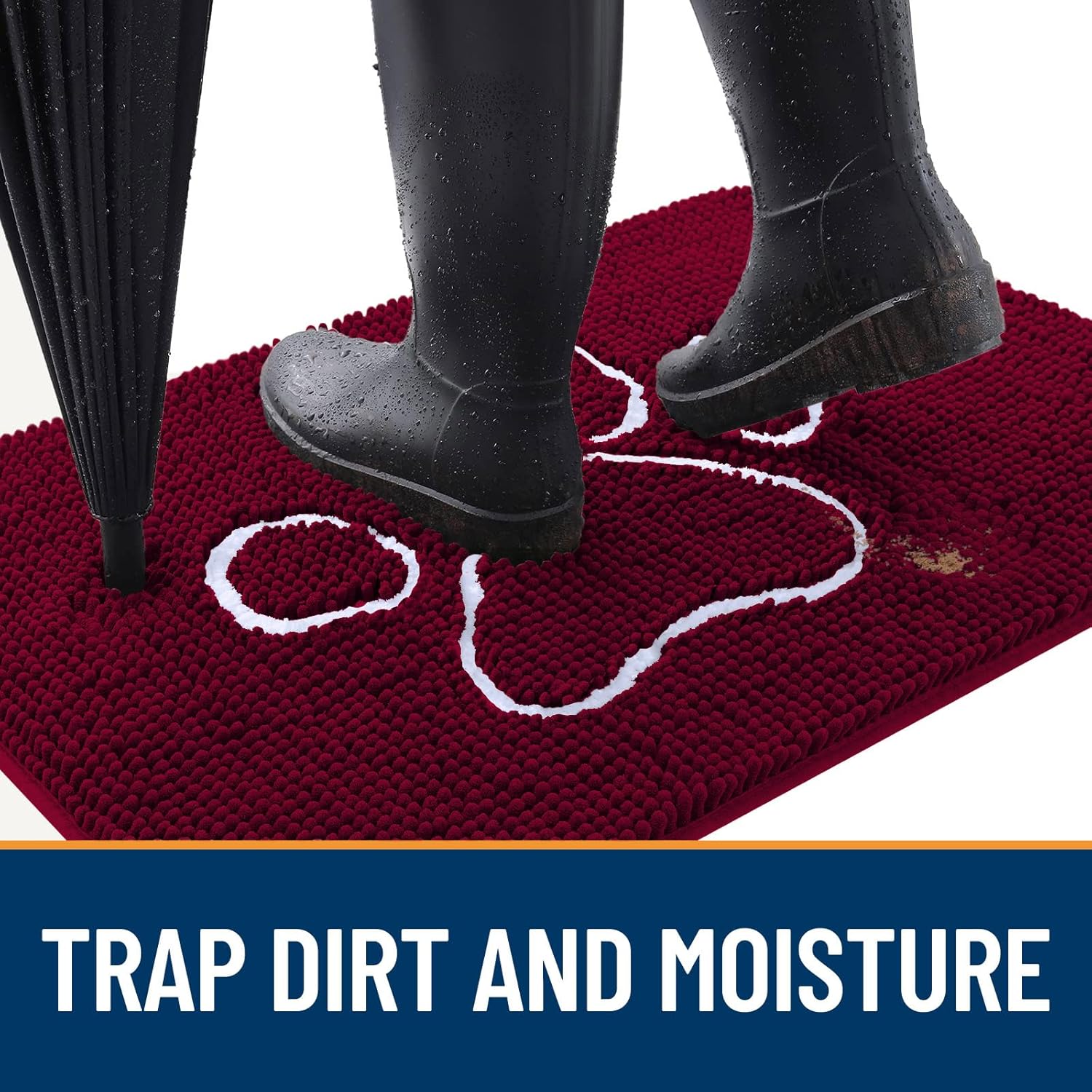 OLANLY Door Mat for Muddy Dog Paws 47x32, Ultra Absorbent Chenille Mud Doormat with Paw Print Design, Non-Slip Washable Doormat for Indoor Entryway, Quick-Dry Pet Bed Mats for Dirty Dogs, Burgundy