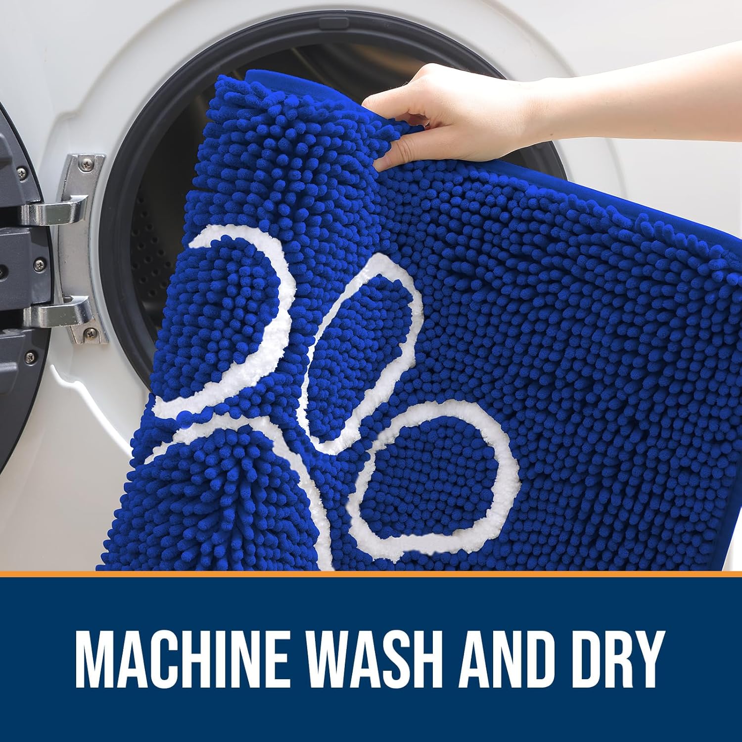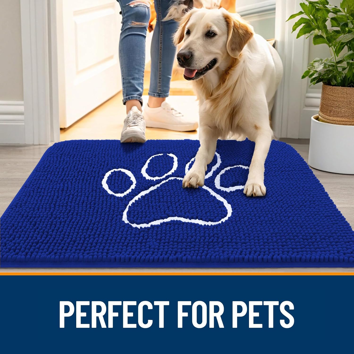 OLANLY Door Mat for Muddy Dog Paws 36x24, Ultra Absorbent Chenille Mud Doormat with Paw Print Design, Non-Slip Washable Doormat for Indoor Entryway, Quick-Dry Pet Bed Mats for Dirty Dogs, Royal Blue