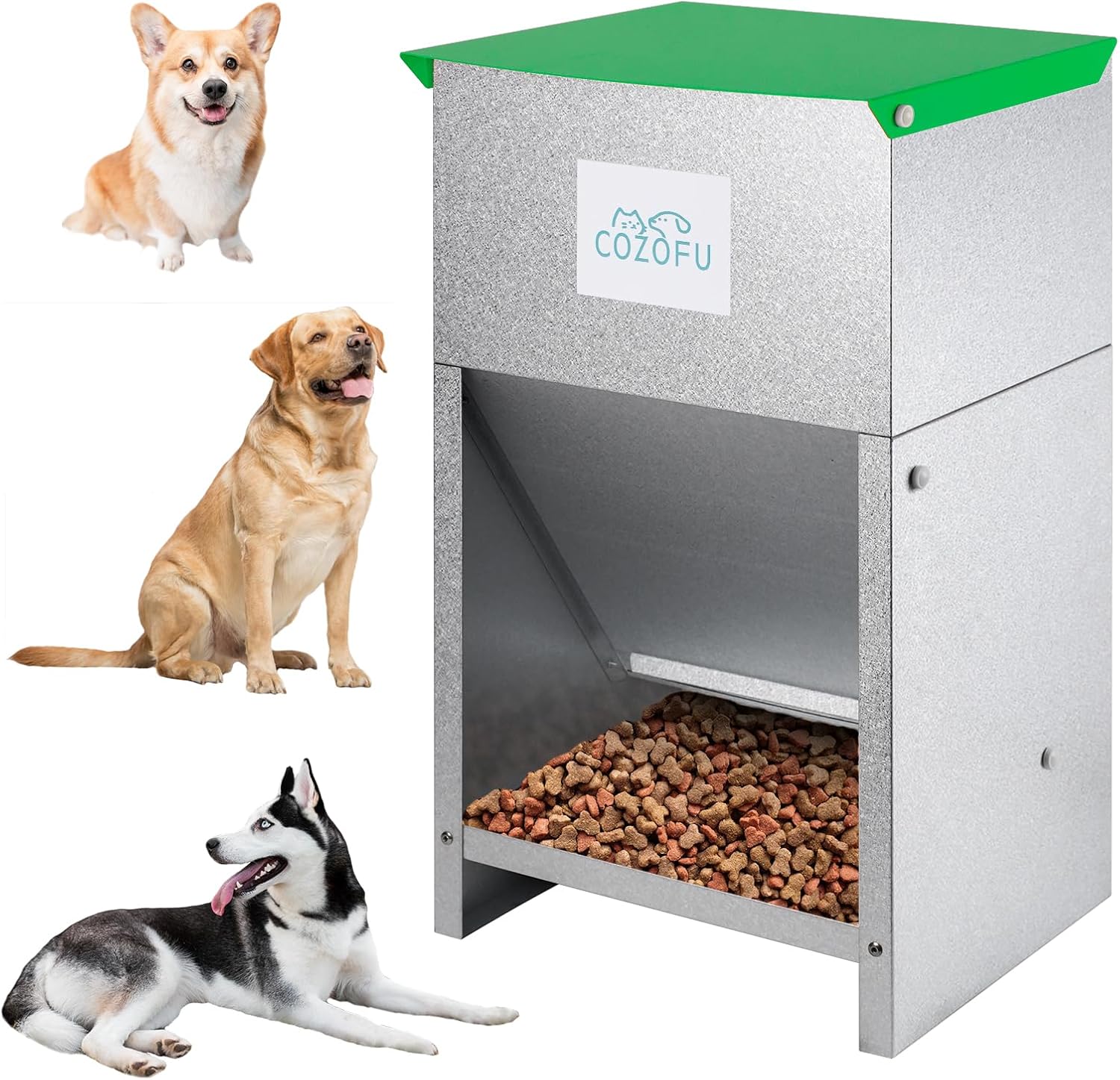 • WEATHER-RESISTANT DESIGN FOR DOGS: Crafted from heavy-duty, rust-resistant G90 galvanized steel, our automatic gravity dog food dispensers are perfect for indoor or outdoor use. For outdoor placement, we recommend positioning it under a large overhang, on a covered deck, porch, or carport to keep it safe from the elements