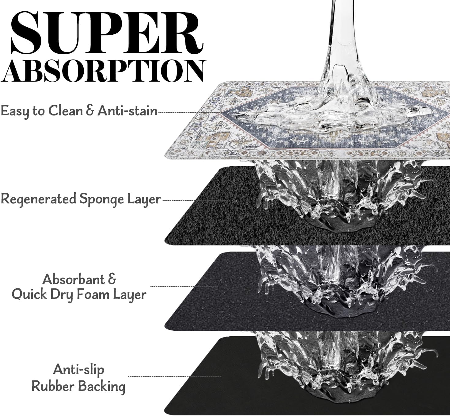 • Super Absorption: The dog mat for water bowl can absorb spilled water without leaving traces and dry quick, avoid wetting pet paws even for messy drinkers. And it does not attract pet hair like traditional silicone dog bowl mat.