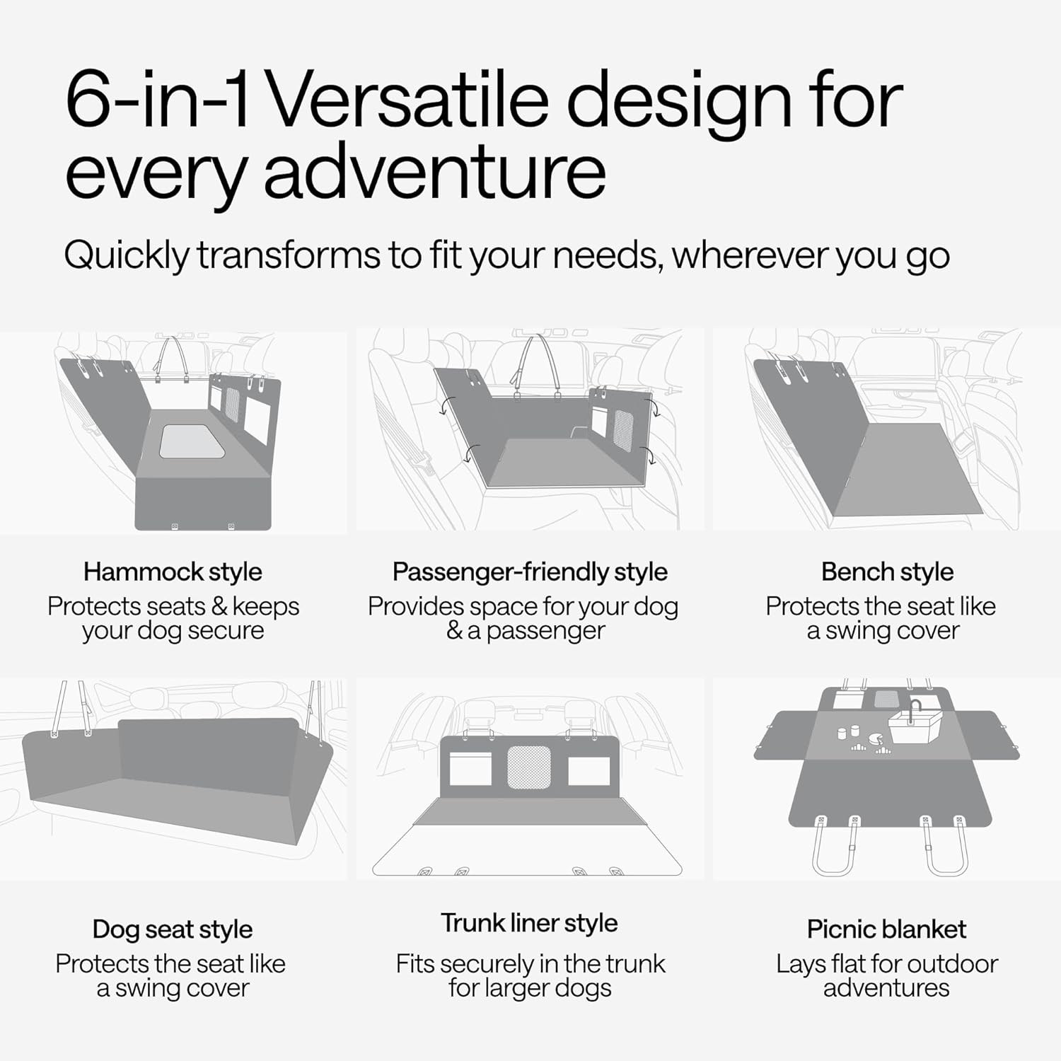 • Suits Cabin & Trunk Alike: this car rear seat protector for dogs features design that suits most types of vehicles; use it as a back seat extender for dogs, dog seat cover for SUV, or even a truck dog seat cover for back seat