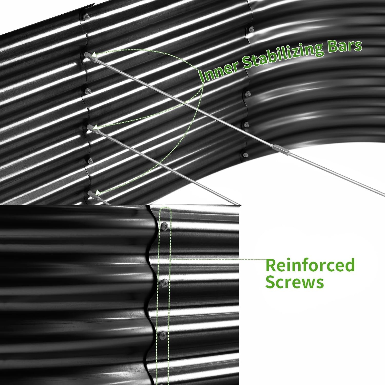 • Double Thickness: The metal planter boxes outdoor with an average thickness of 0.78 mm, and it has a very stable galvanized sheet. It will be your best choice compared to ordinary raised planters with a thickness of only 0.3 mm.
