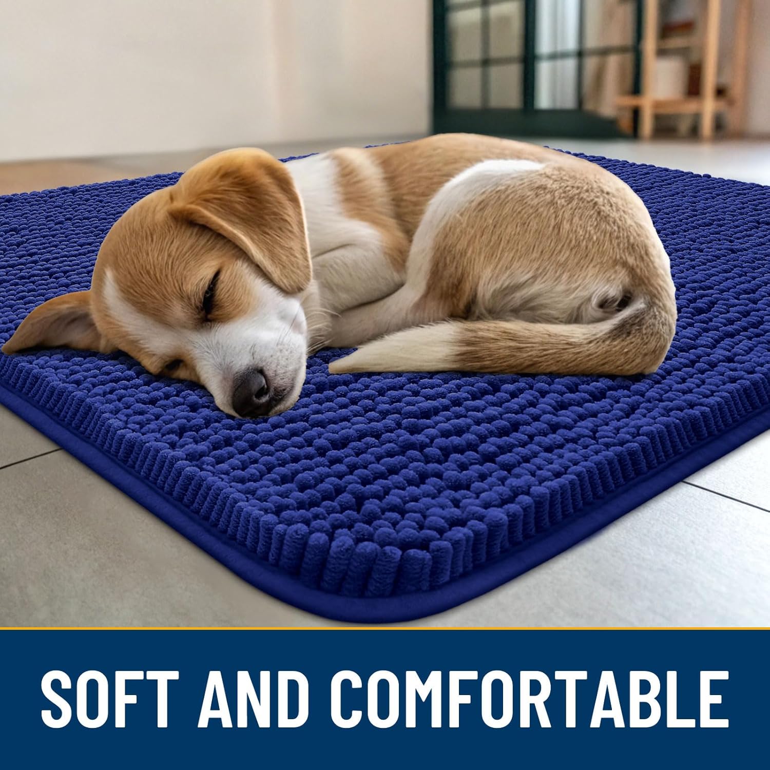 Smiry Dog Door Mat for Muddy Paws 36x24, Absorbs Moisture and Dirt Doormat, Non-Slip Washable Quick Dry Chenille Front Door Mat Indoor Entrance, Entryway Carpet for Inside Floor, Navy Blue