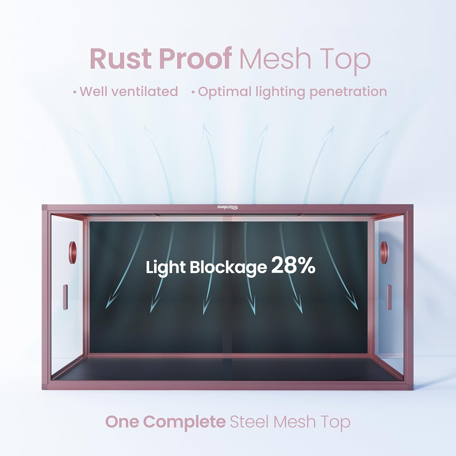 • ใ€Highly Adaptiveใ€‘Well-lit screen top with only 28% blockage. Compatible with many reptile accessories and equipment, such as heat lamps for reptiles, reptile humidifiers, reptile misters, reptile foggers, reptile UVA and UVB. Our reptile terrarium is great for holding temps and humidity.