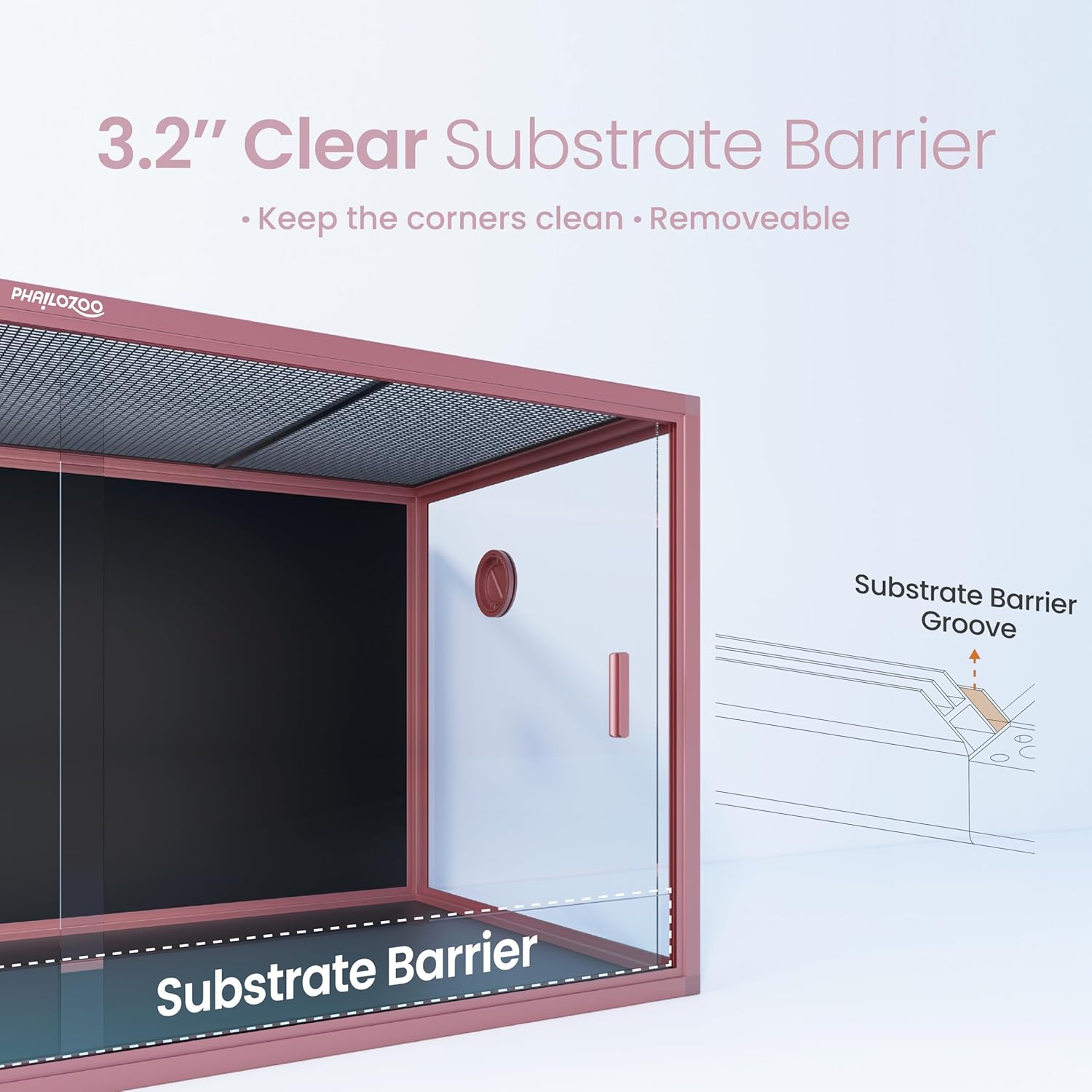 • ใ€Easy Maintenanceใ€‘Front opening reptile terrarium with door handles included for easy cleaning & feeding. No more suction cup problems or unsightly fingerprints all over. The substrate barrier keeps the substrate in place. Our tempered glass doors are durable enough to withstand scratching.