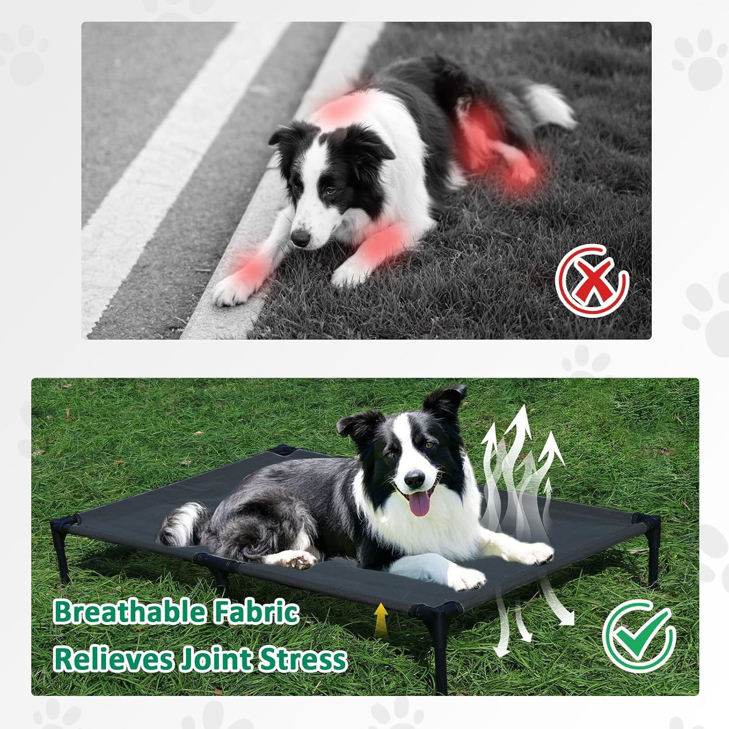 • BREATHABLE TESLIN MESH: This outdoor dog bed comes with breathable and durable Teslin mesh, provides airflow and firm support to relieve joint pressure. Our dog cot bed is suitable for dogs of all life stages, from puppy to the senior
