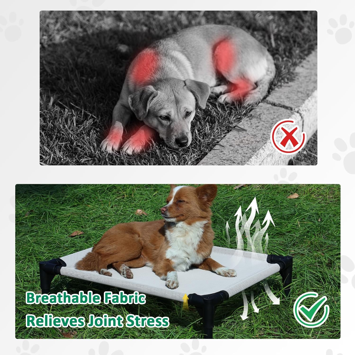 • BREATHABLE TESLIN MESH: This outdoor dog bed comes with breathable and durable Teslin mesh, provides airflow and firm support to relieve joint pressure. Our dog cot bed is suitable for dogs of all life stages, from puppy to the senior