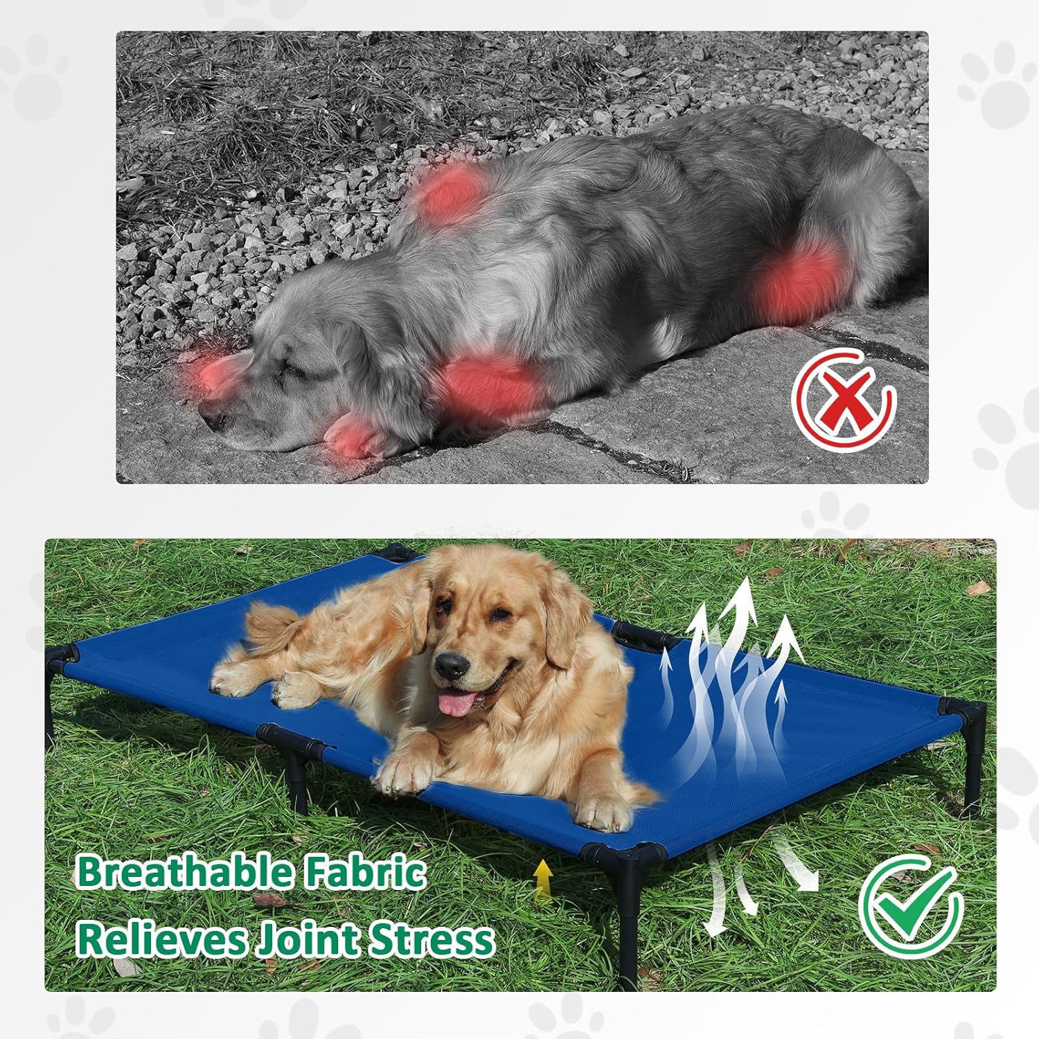 Elevated Dog Bed XL, XLarge Raised Outdoor Dogs beds, Breathable Mesh and Anti-Slip Feet, Lifted Pet Cot Off Ground, Cooling Dog Hammock Indoor (XL, Blue)