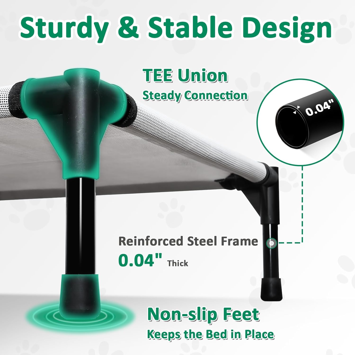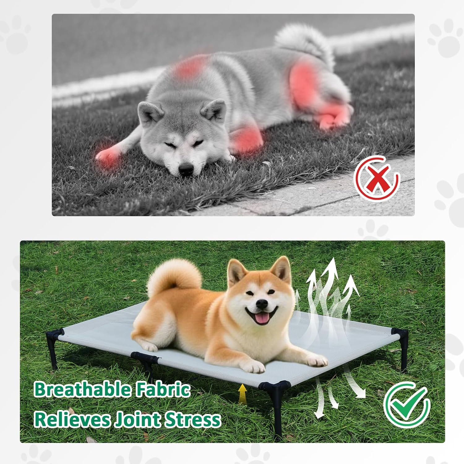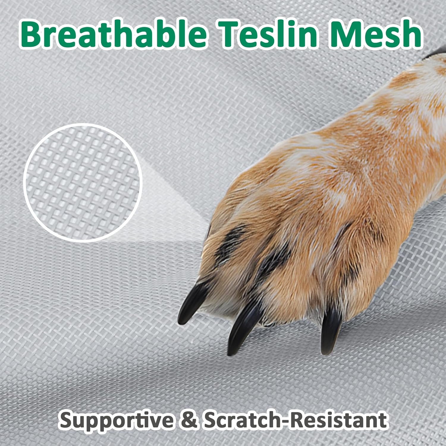 • BREATHABLE TESLIN MESH: This outdoor dog bed comes with breathable and durable Teslin mesh, provides airflow and firm support to relieve joint pressure. Our dog cot bed is suitable for dogs of all life stages, from puppy to the senior