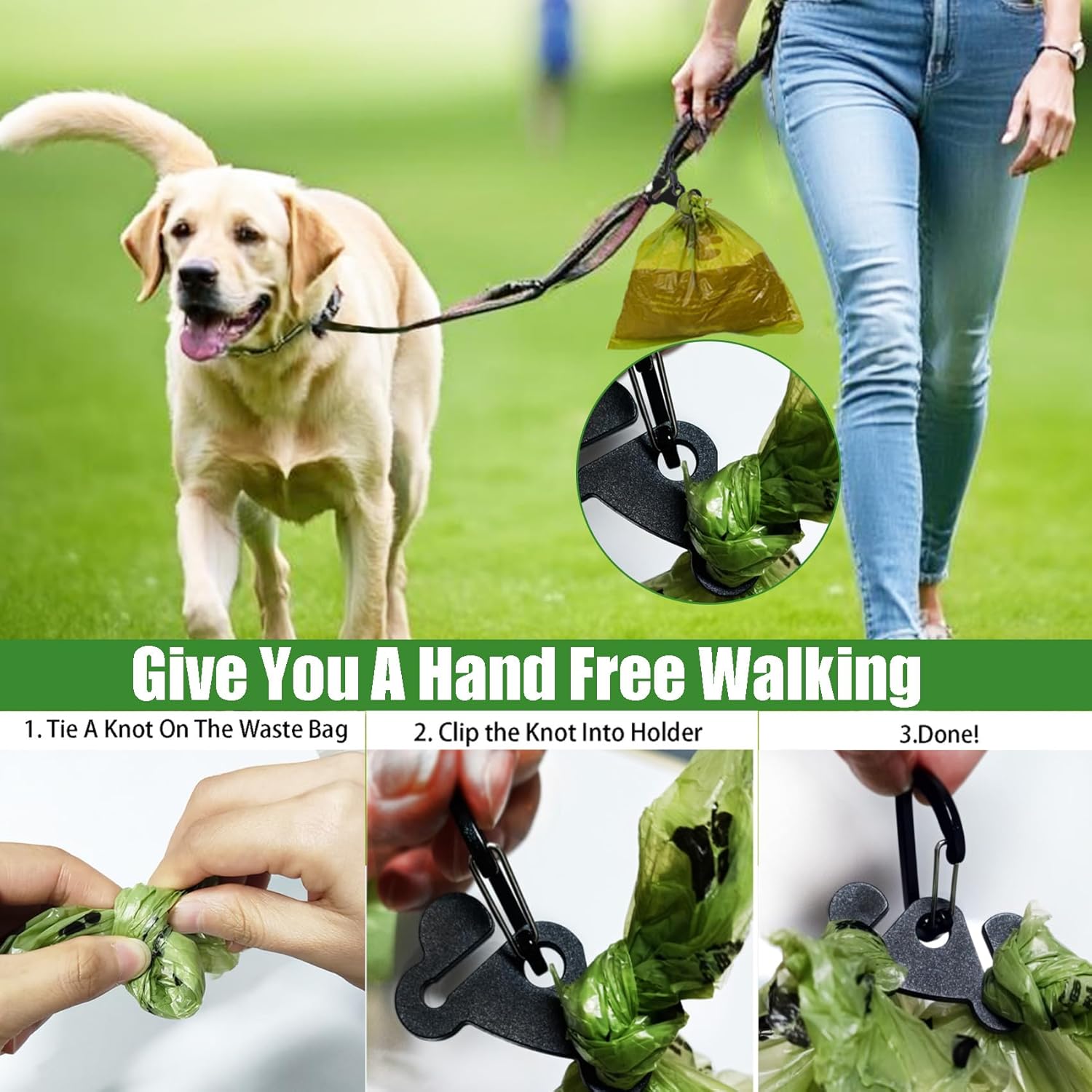 • HAND FREE WALKING SET - This practical set includes ONE Dog Poop Bag Dispensers, ONE Dog Poop Bag Holder & ONE Roll Waste Bag. A great leash attachment set for your dog walking. Enjoying hand free walking without holding wasted poop bag.