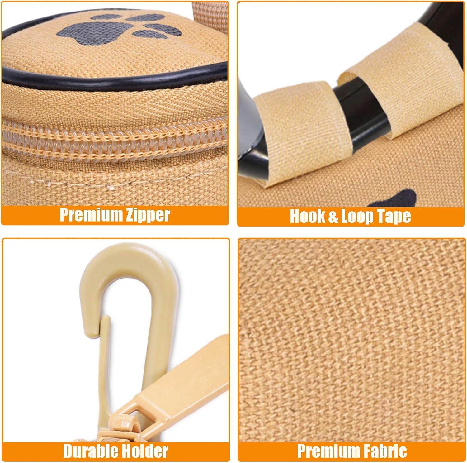 • DOG POOP BAG DISPENSER - Made of premium material, more wear resistant and duarable. A big enough space to hold 1 or 2 rolls of dog poop bags, money, keys, and even dog treats. And the hole in the middle for pulling out bags one by one. Just put all your need in this bag & enjoy your outing with much more convenience.