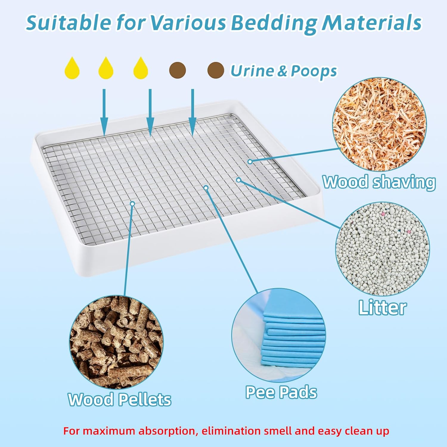 • Low Entrance Design: Small animals's legs and feet are short, this low edge guinea pig litter box with metal grid let's them get up and down so much easier; Wonderful low entry (on all sides) perfect for arthritics rabbit and senior small animals that they doesn't have to launch himself to get over the sides, since they're not very deep!!!!