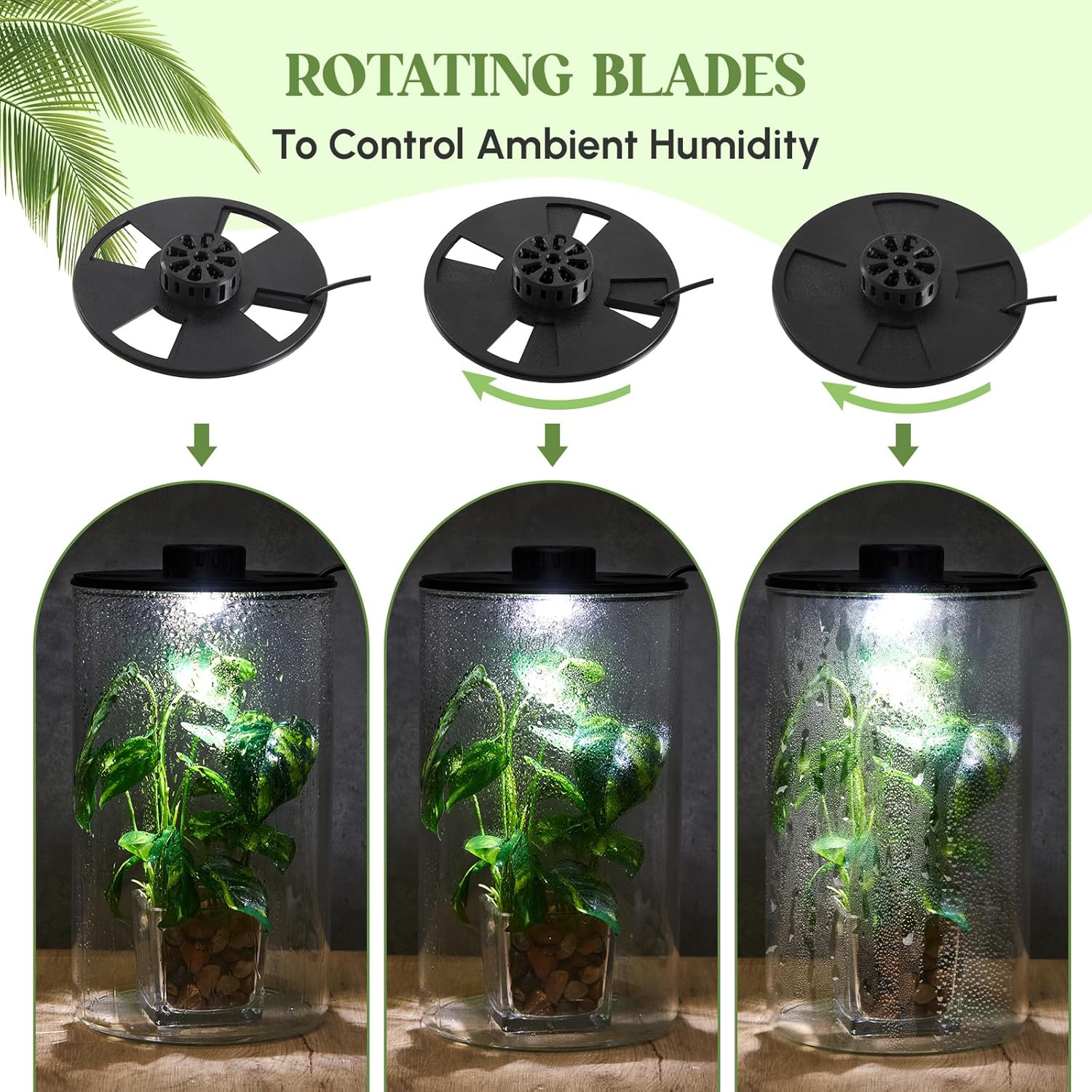 • Efficient and Adjustable Lighting: our 3W LED light is suitable for small plants and mini aquariums; You can easily change between strong and weak lighting modes, providing the right amount of light for your succulents or mosses; The adjustable lighting and rotating lamp base allow you to control the ventilation and humidity inside the bottle, which is especially useful for plants that require high humidity