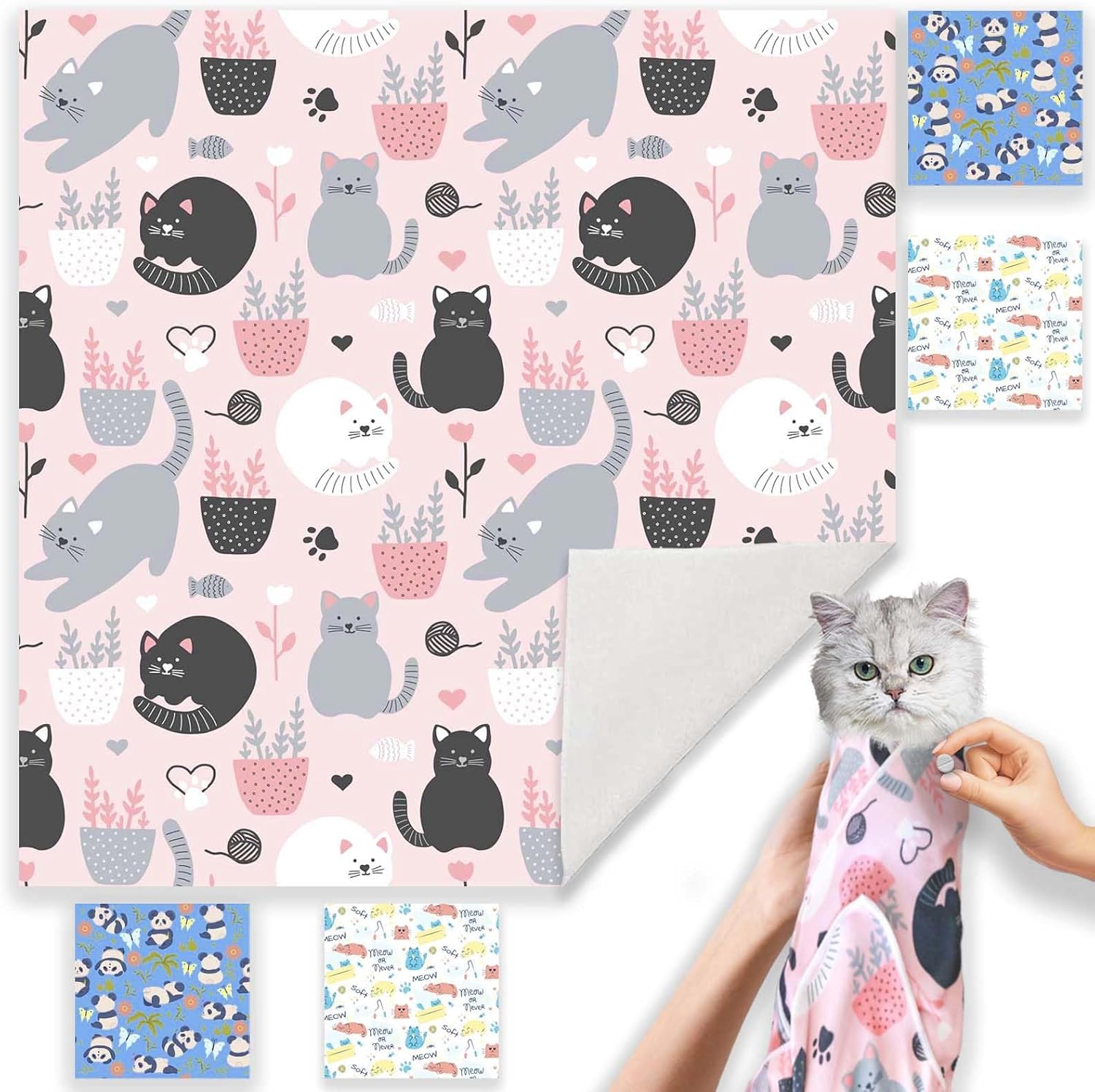 • 【2025 New Cat Grooming Wrap】This new cat wrap fabric features innovative patterns, including pink kitten and panda designs, providing you with a unique visual experience.