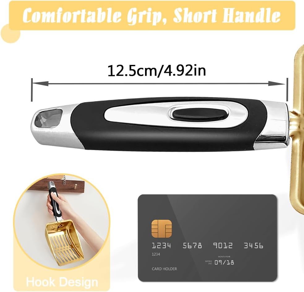 Stainless Steel Cat Litter Scoop - Metal Medium Cat Litter Scoop - Sturdy Mesh Scooper - Easy to Clean - Suitable for Cat Litter Box - Golden