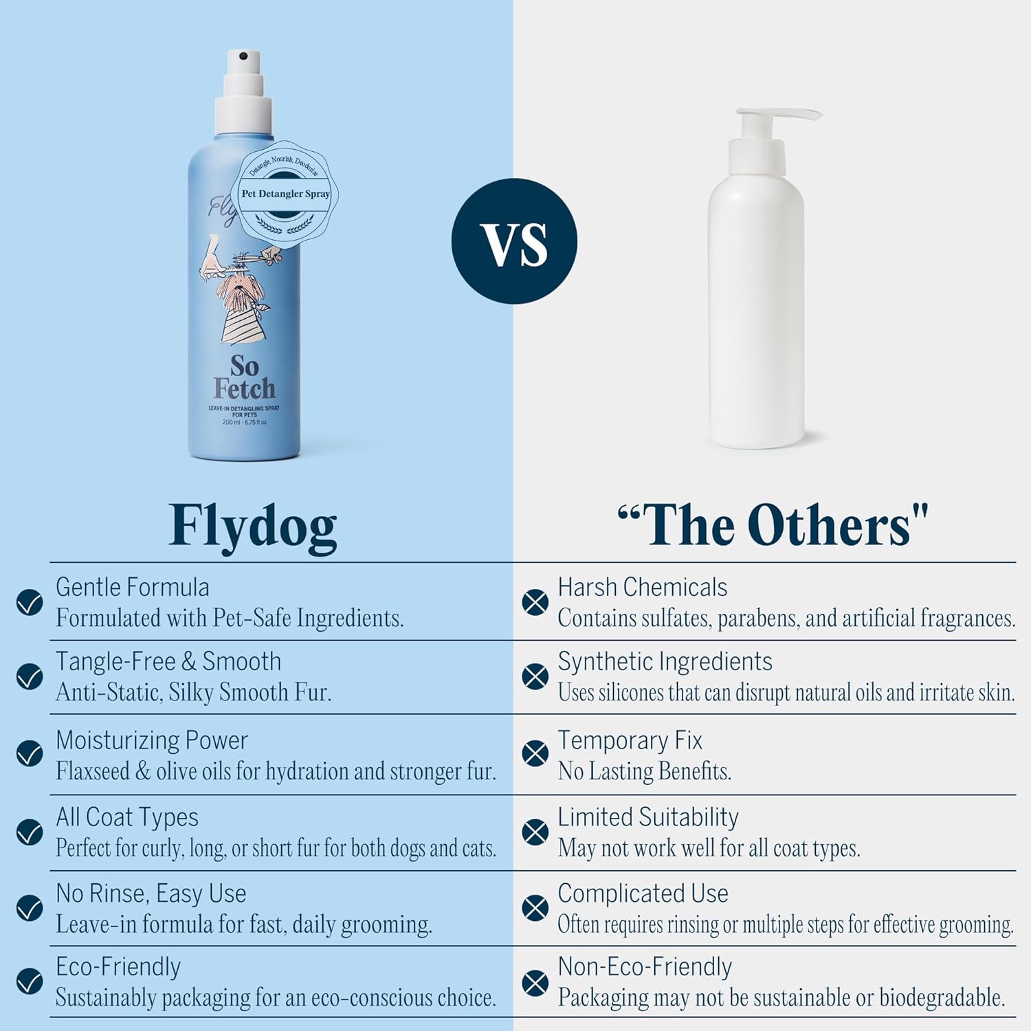 FlyDog Pet Detangler Spray for Dogs & Cats – Leave-in Hair Detangler Spray for Tangle-Free Grooming | Dog & Cat Coat Conditioner | Anti-Static, Deodorizing & Long-Lasting Freshness