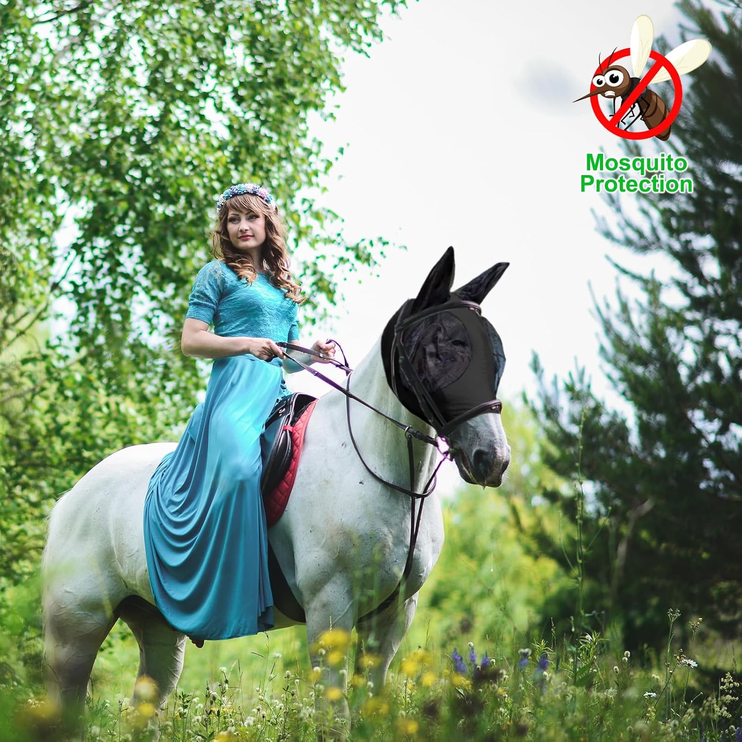 • VERSATILE DESIGN: Stretchy and comfortable horse fly mask available in six vibrant colors - pink, blue, black, gray, red and purple, perfect for protecting horses from insects and sun