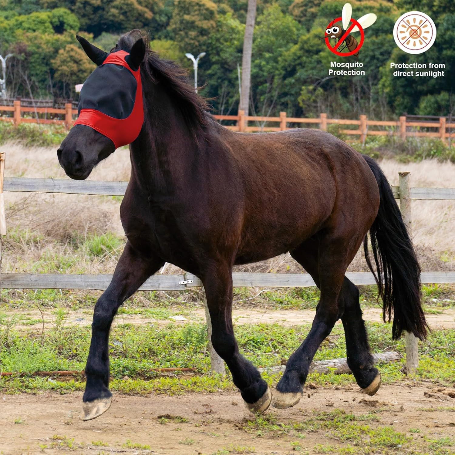 • PROTECTION: Full-coverage mesh horse fly mask shields your horse's face, eyes, and ears from harmful UV rays, dust, and pesky insects