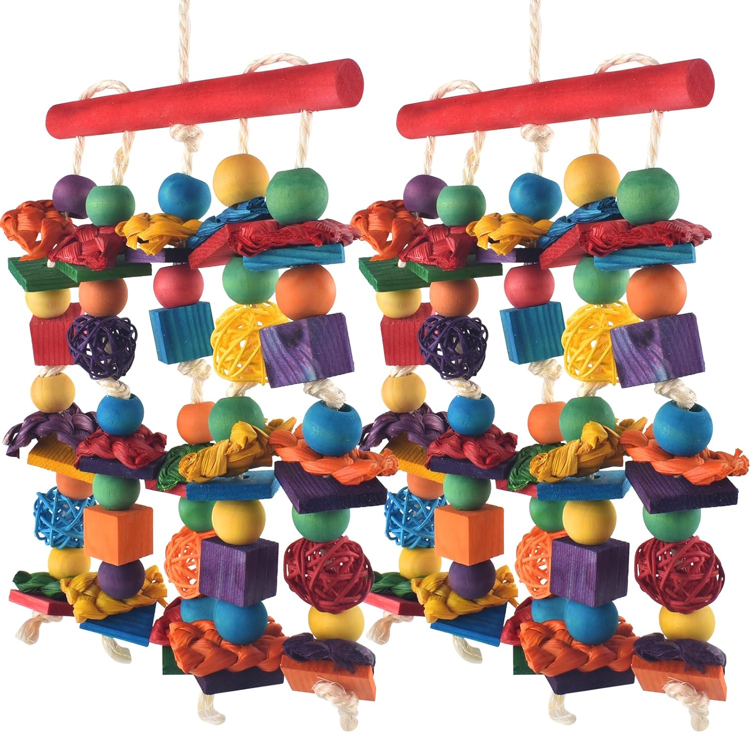 • Perfect Design: The bird tearing toys feature wooden blocks of different shapes and bright colors. These vibrant designs delight your birds and enhance their joy. The interactive design stimulates their natural instincts to play and explore, keeping them active and promoting their physical and mental health
