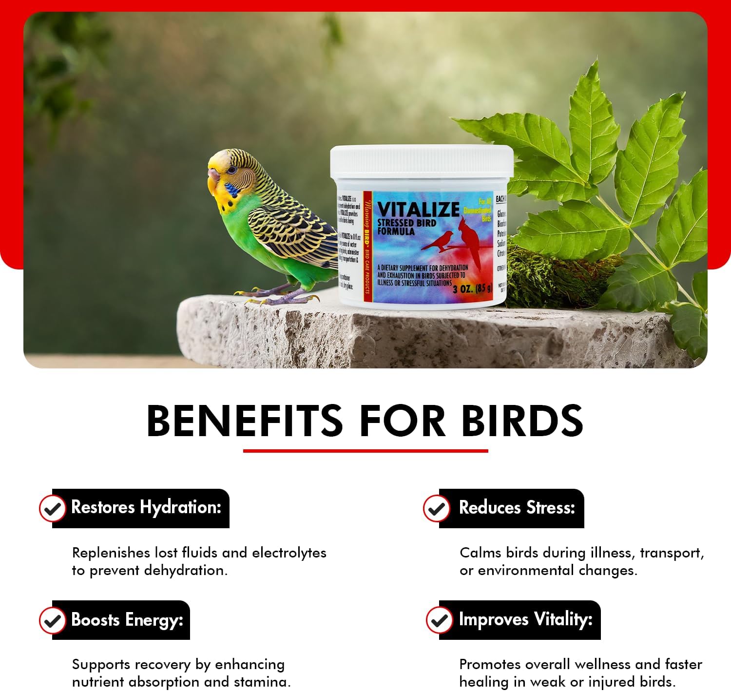 Morning Bird Vitalize, Supplement for Sick, Injured, or Stressed Caged Birds; Dehydration and Exhaustion Treatment for Parakeets, Cockatiels, Budgies, Finches, Canaries, and Parrots, 3 oz