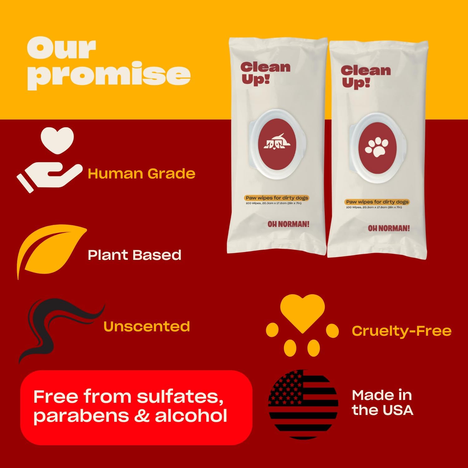 OH NORMAN! Clean Up Paw Wipes for Dogs (8x7) by Kaley Cuoco, Gentle Pet Grooming Wipes, Plant-Based and Unscented, 100 Count