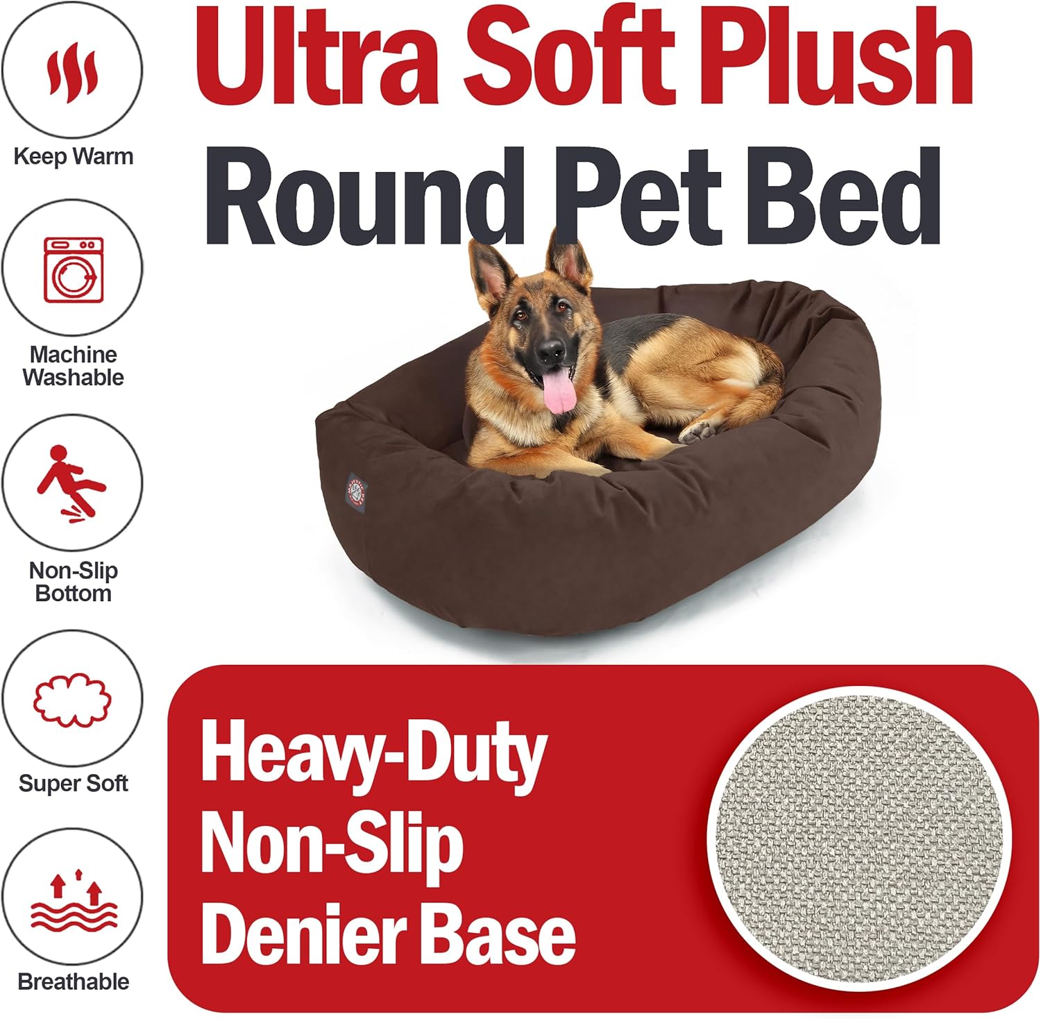 Majestic Pet 52 Inch Suede Calming Dog Bed Washable 52x35x11 (Inch) – Cozy Soft Round Donut Dog Bed with Spine Support for Dogs to Rest Their Head - Pet Bed X- Large – Chocolate (2025)