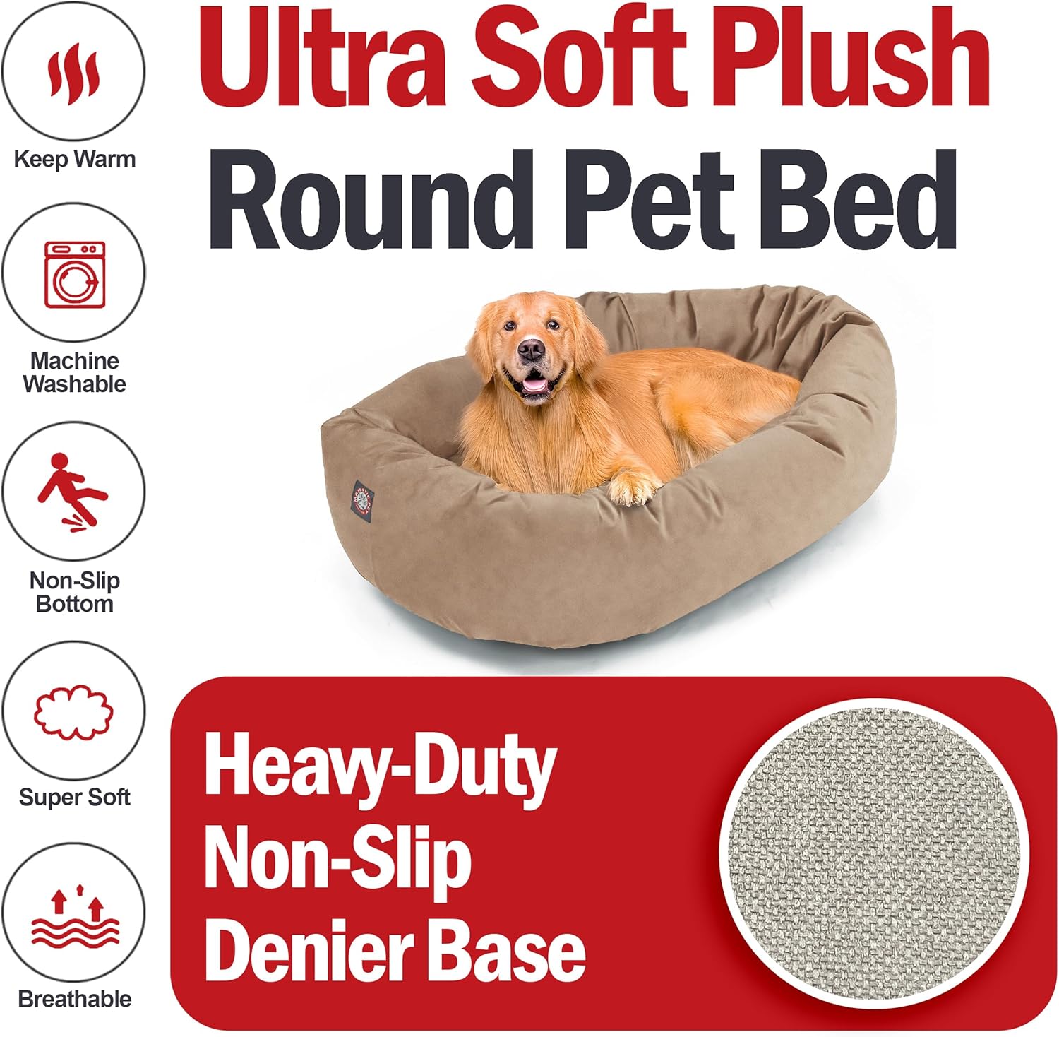 Majestic Pet 40 Inch Suede Calming Dog Bed Washable 40x29x9 (Inch) – Cozy Soft Round Donut Dog Bed with Spine Support for Dogs to Rest Their Head - Pet Bed Large – Stone (2025)