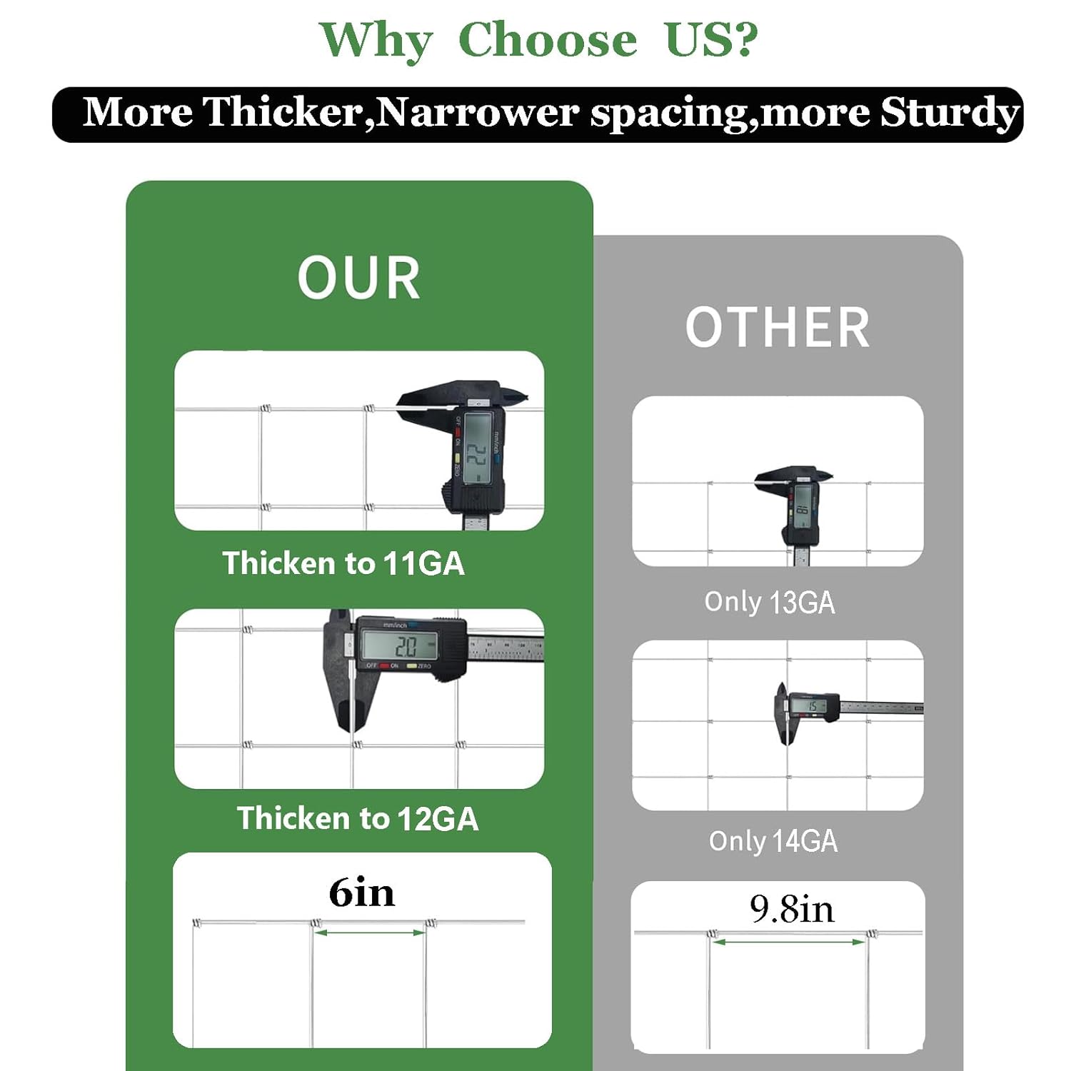 • Scientific Design -The bottom and upper have different opening mesh sizes.The Openings of fencing mesh get smaller toward the bottom to prevent rabbits, dogs, cats, chickens, foxes and other small animals to enter your farm,field or Garden.